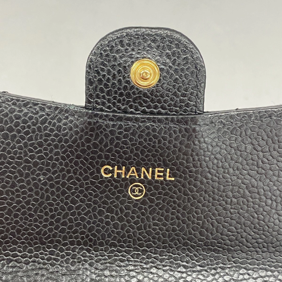 [5od4428-h] Chanel Matelasse Long Wallet, Caviar Leather, Black, Gold Hardware, Pre-owned, Women's