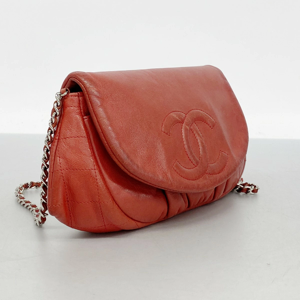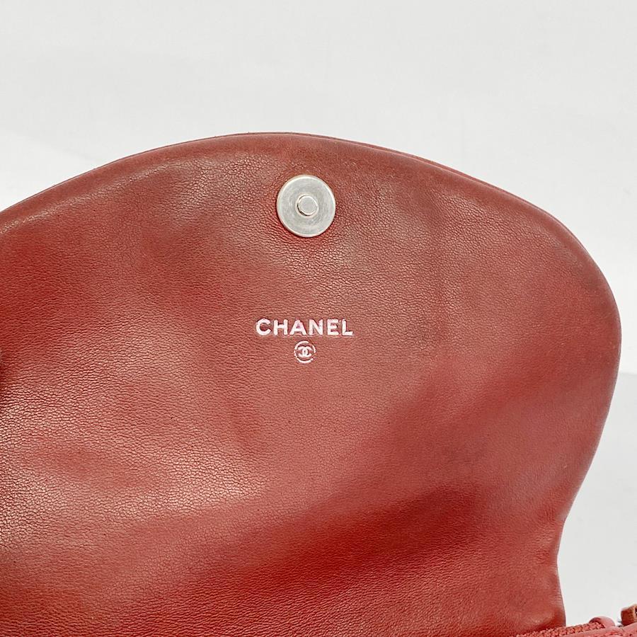 【5od4625-h】シャネル ショルダーウォレット マトラッセ チェーンショルダー ラムスキン レッド シルバー金具【中古】レディース
