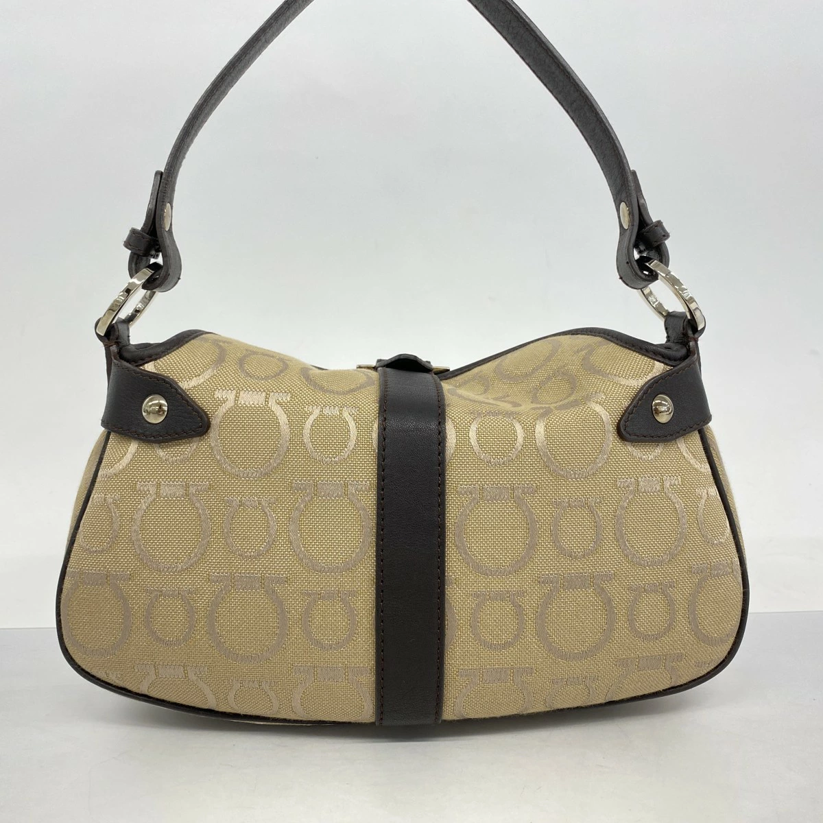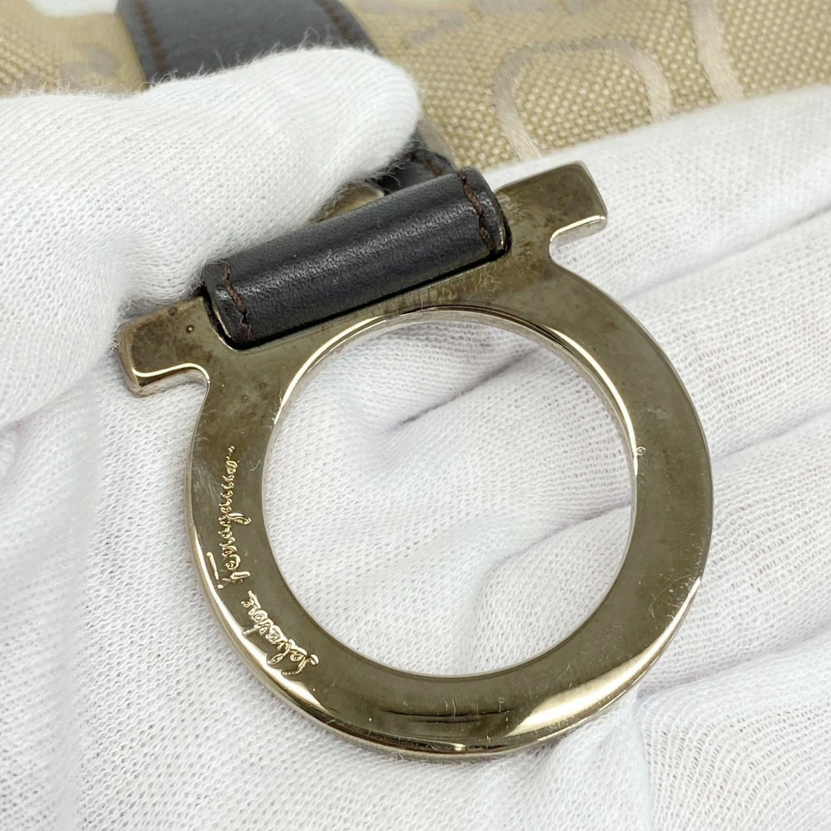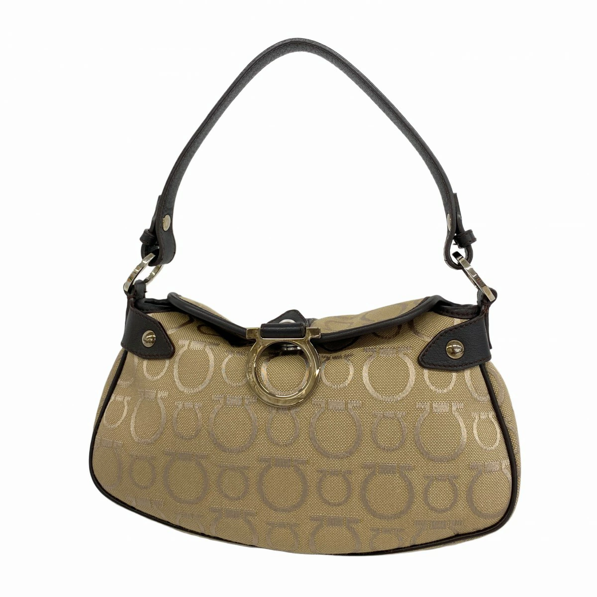 ★SALE【5oe4866】サルヴァトーレフェラガモ ハンドバッグ ガンチーニ キャンバス ベージュ ブラウン シャンパンゴールド金具【中古】レディース