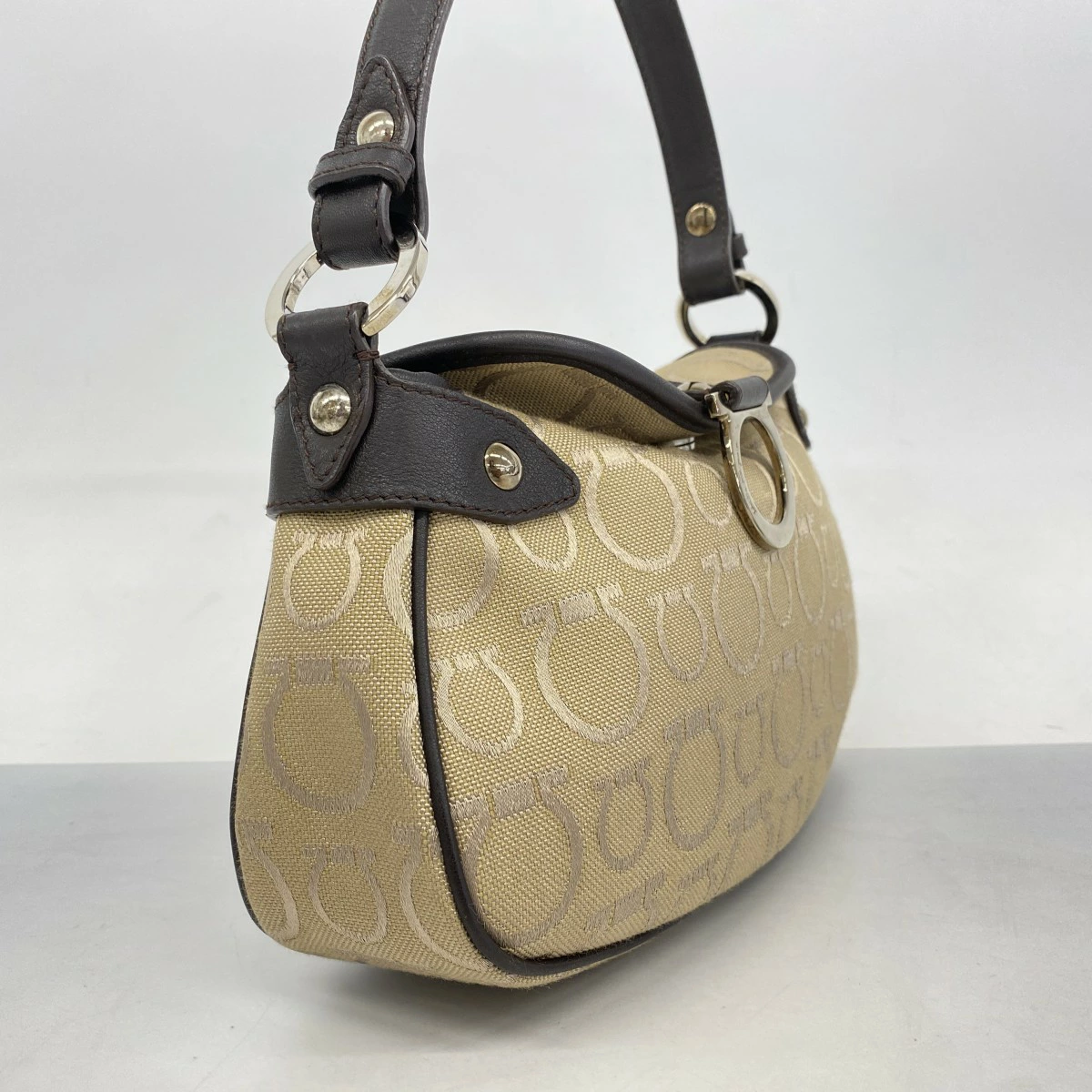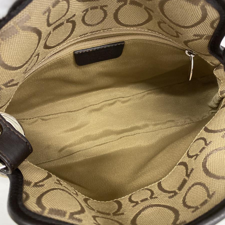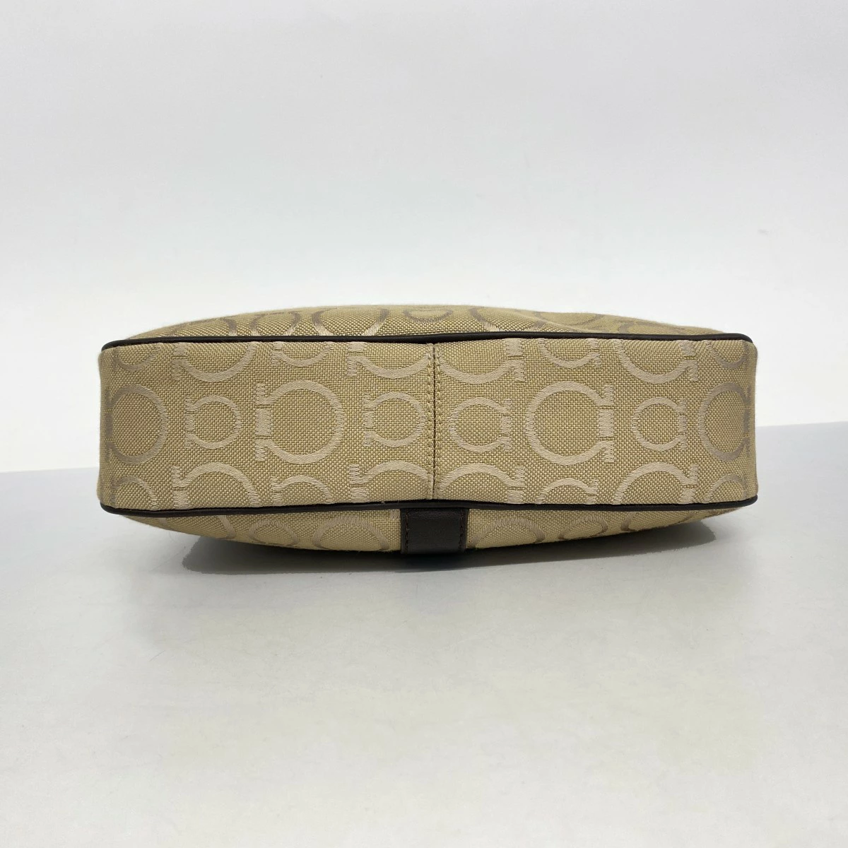 ★SALE【5oe4866】サルヴァトーレフェラガモ ハンドバッグ ガンチーニ キャンバス ベージュ ブラウン シャンパンゴールド金具【中古】レディース