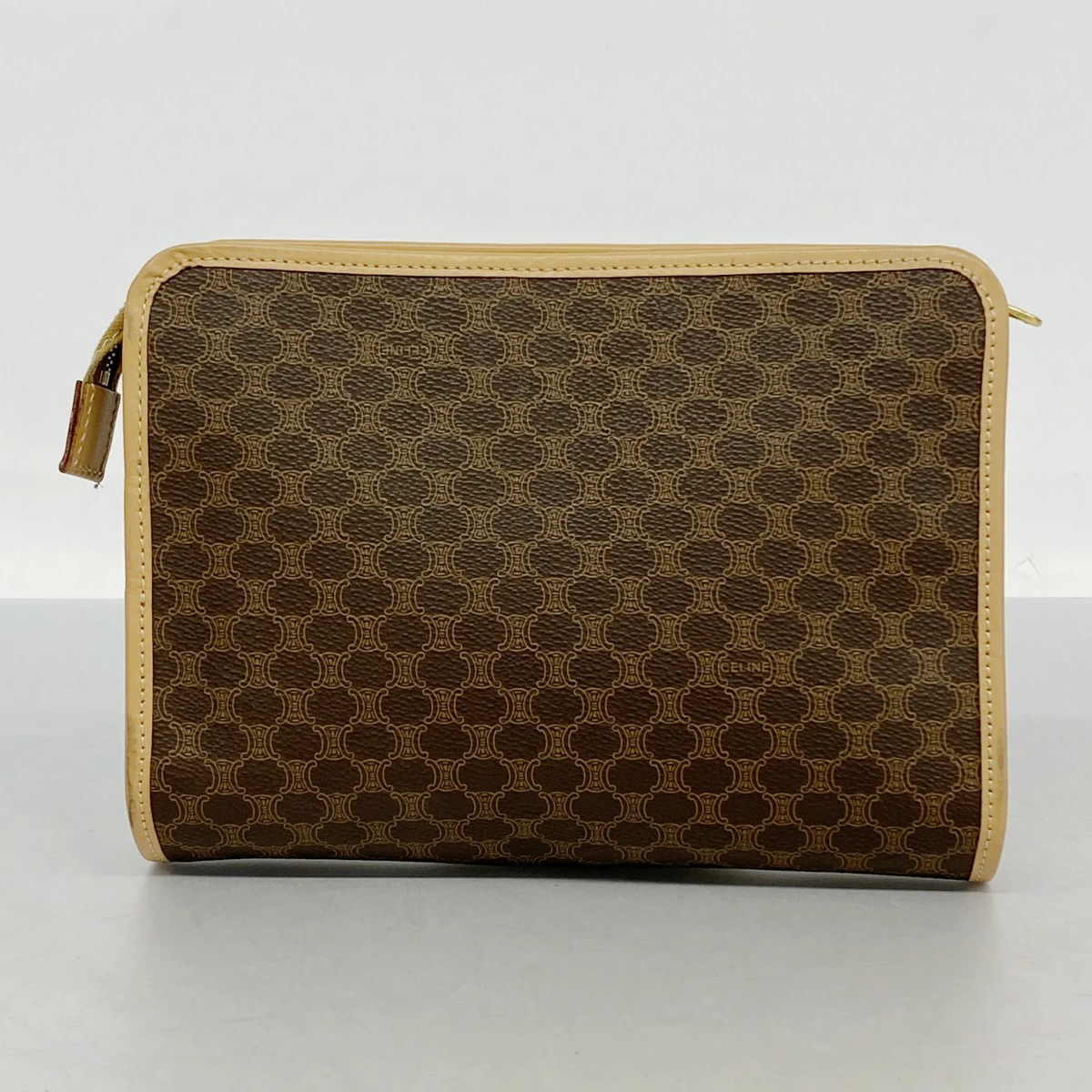 【5oe4938-r】セリーヌ クラッチバッグ マカダム PVC ブラウン ゴールド金具【中古】メンズ レディース ユニセックス