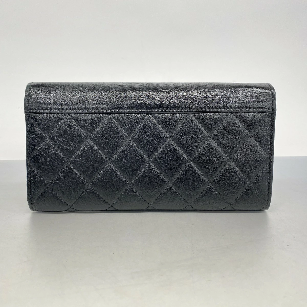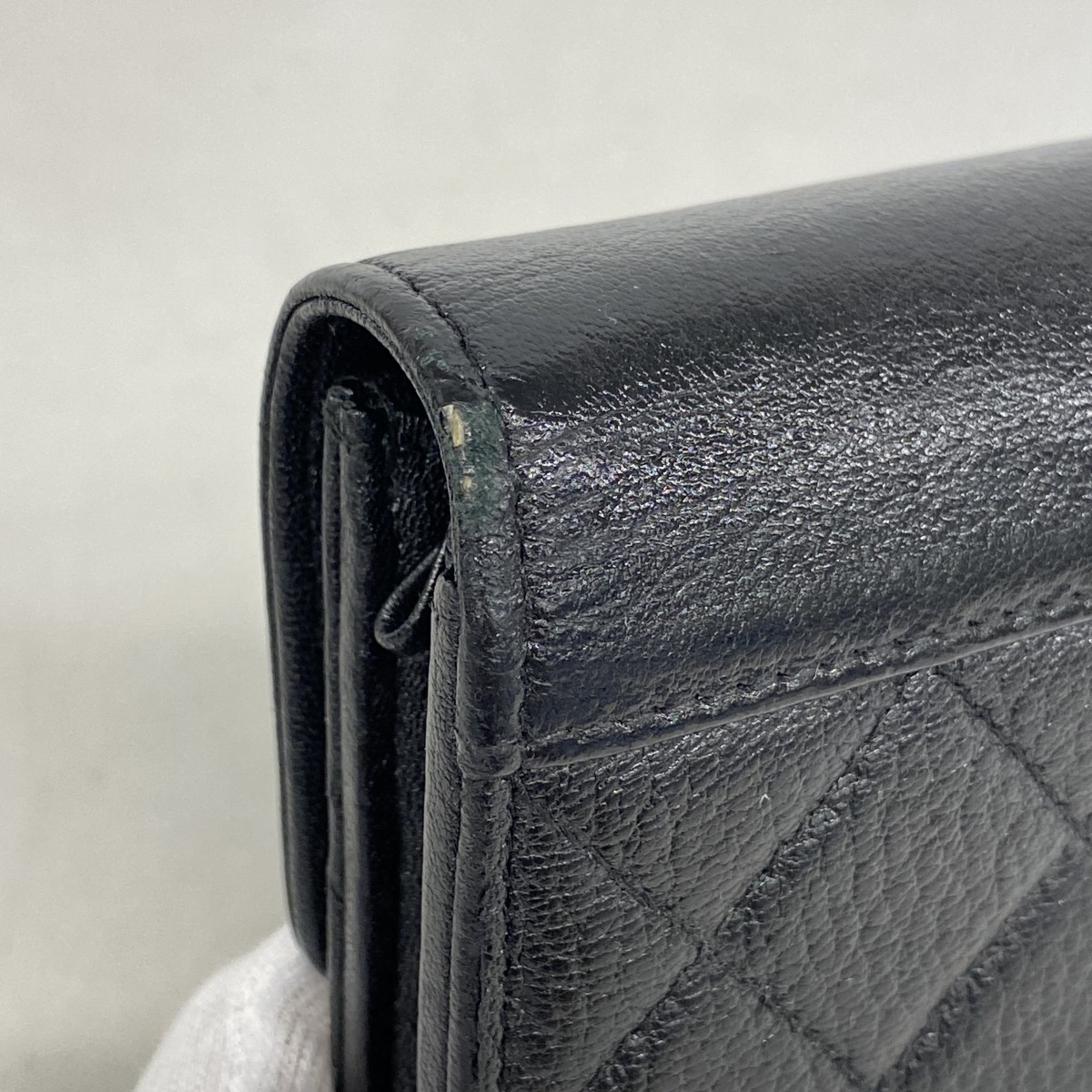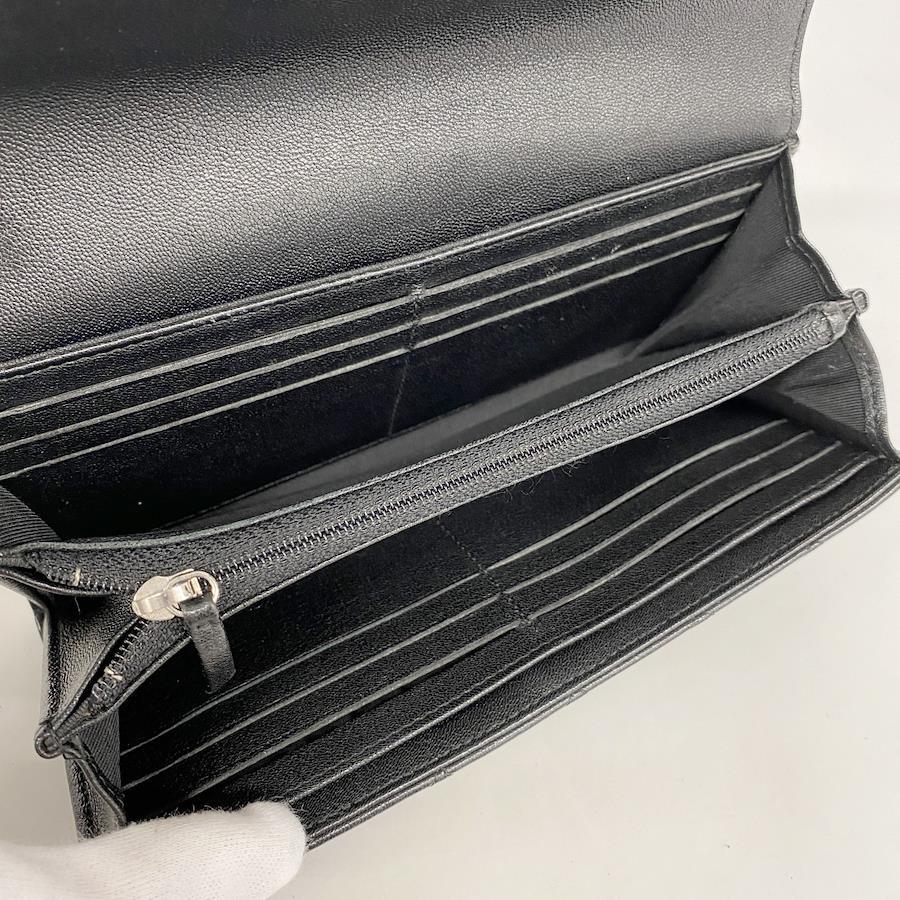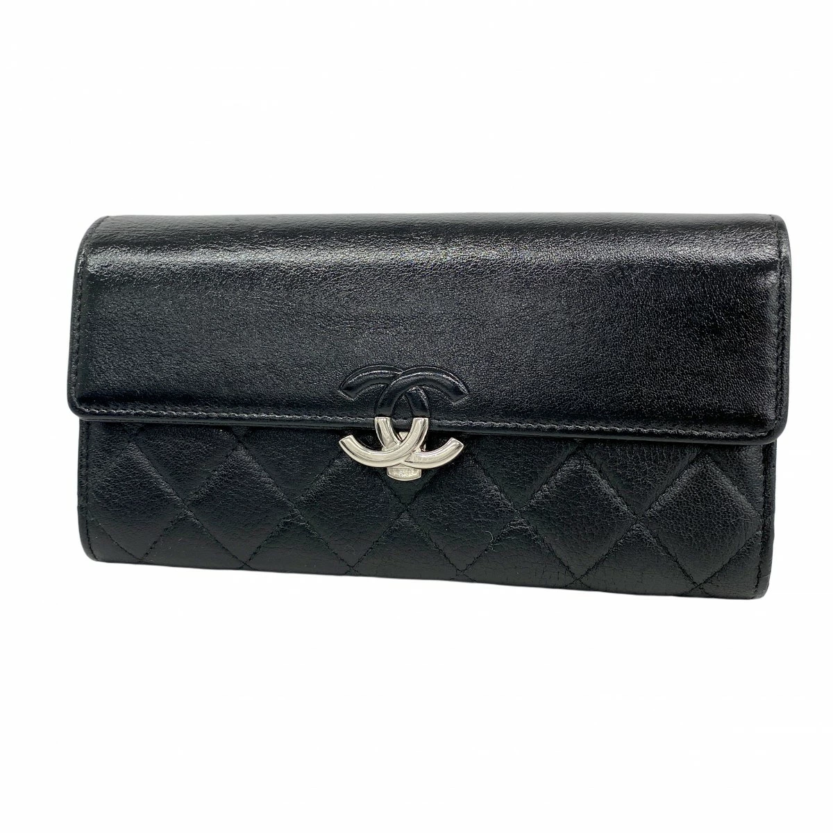 【5oe5104-h】シャネル 長財布 マトラッセ レザー ブラック シルバー金具【中古】レディース