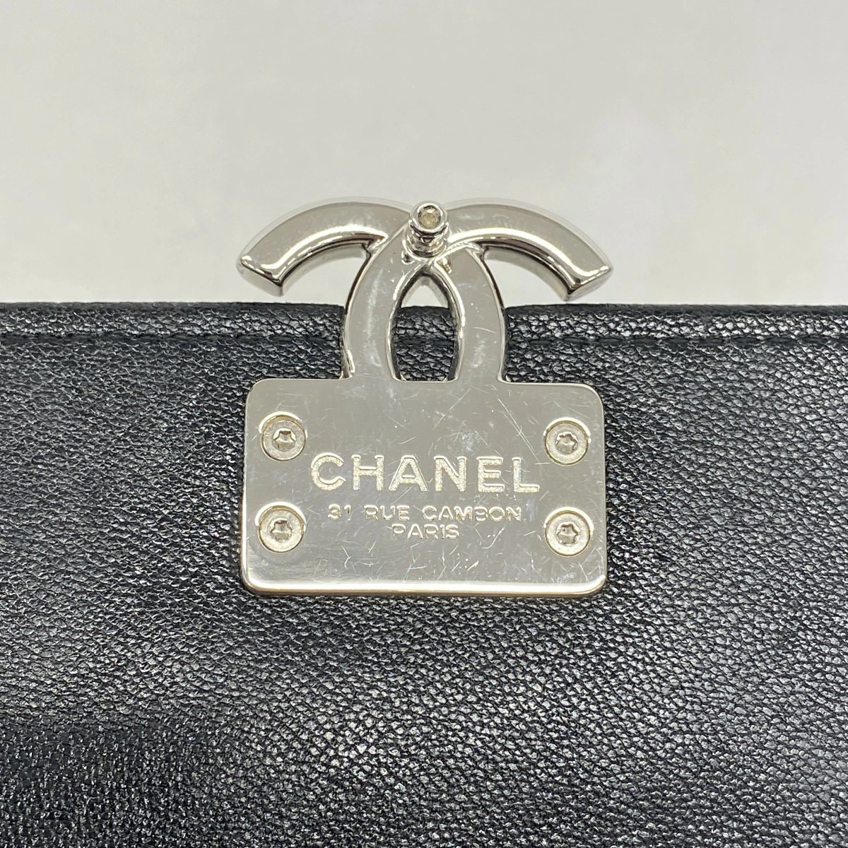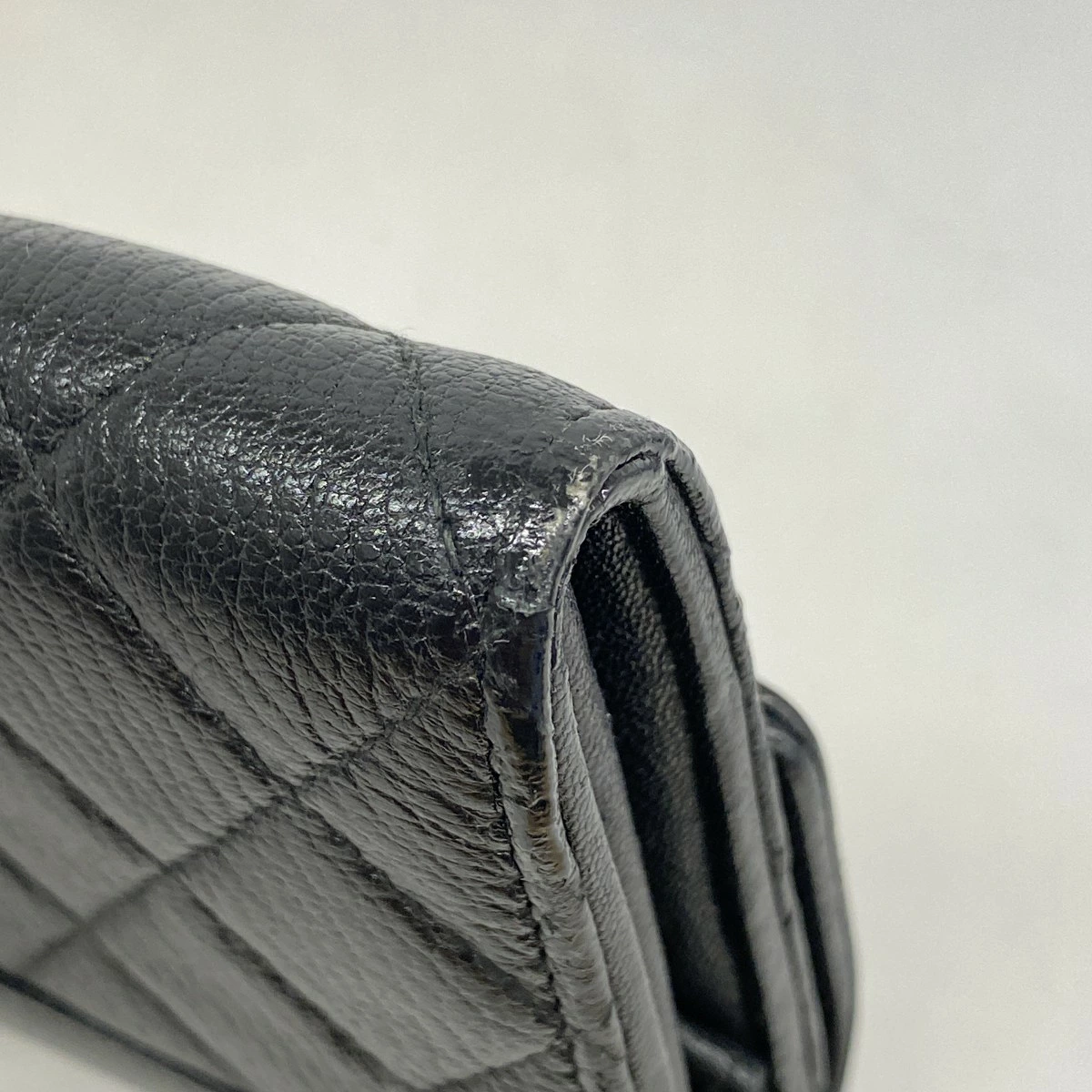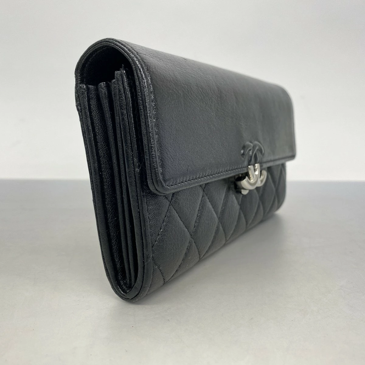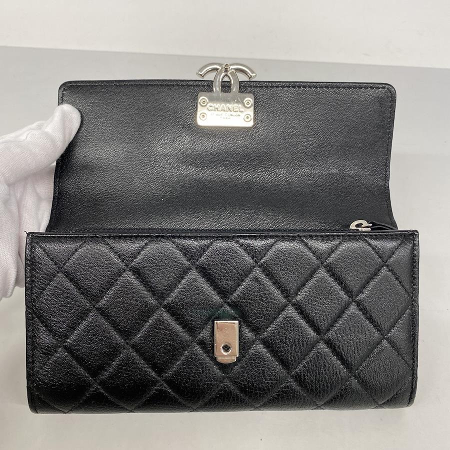 【5oe5104-h】シャネル 長財布 マトラッセ レザー ブラック シルバー金具【中古】レディース