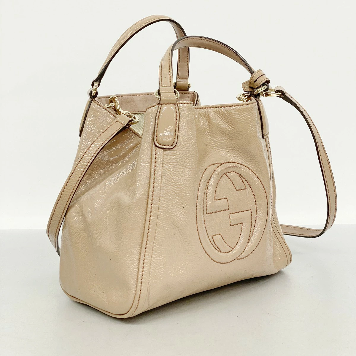 【5oe5155】グッチ ハンドバッグ ソーホー 336751 エナメル ピンクベージュ ゴールド金具 2wayバッグ【中古】レディース