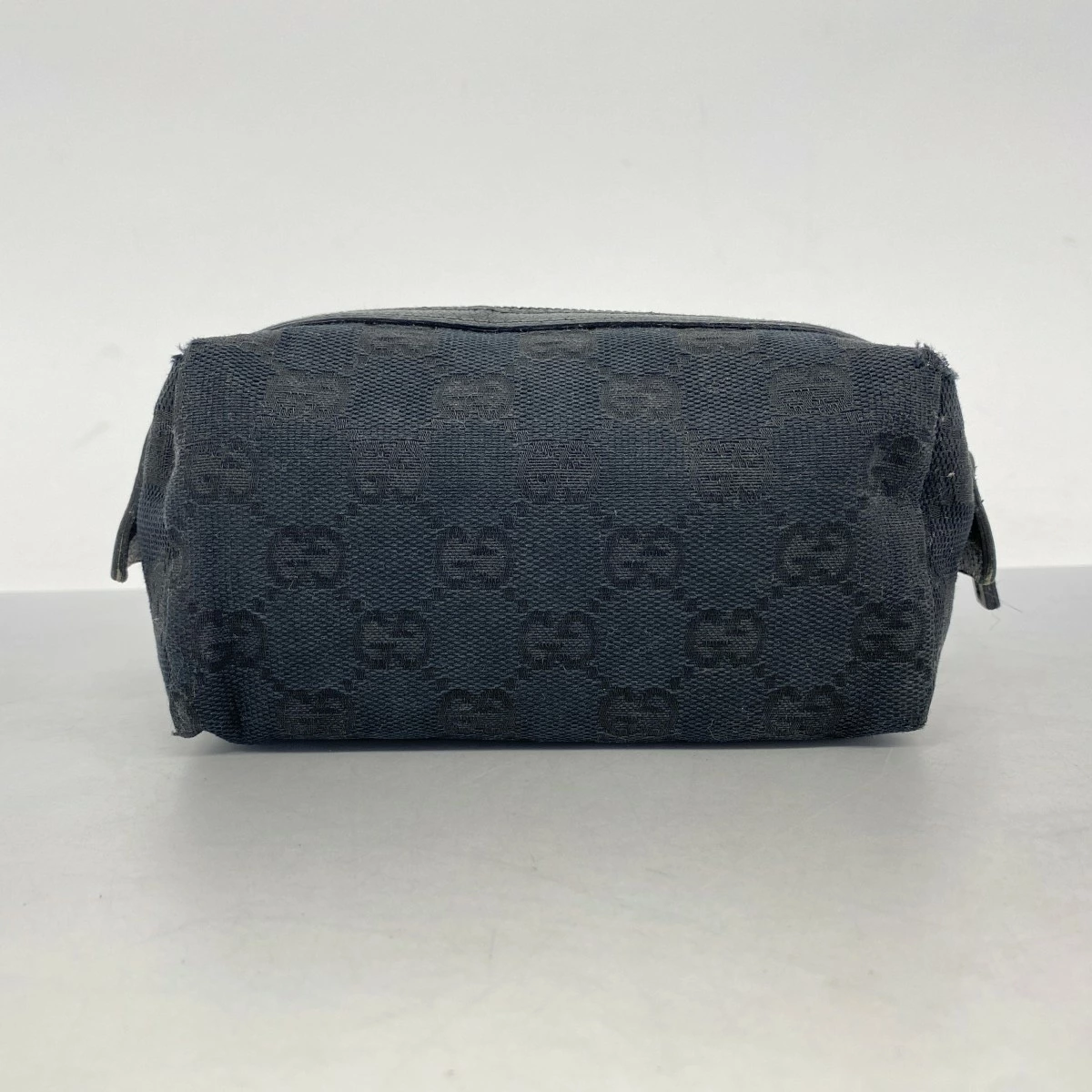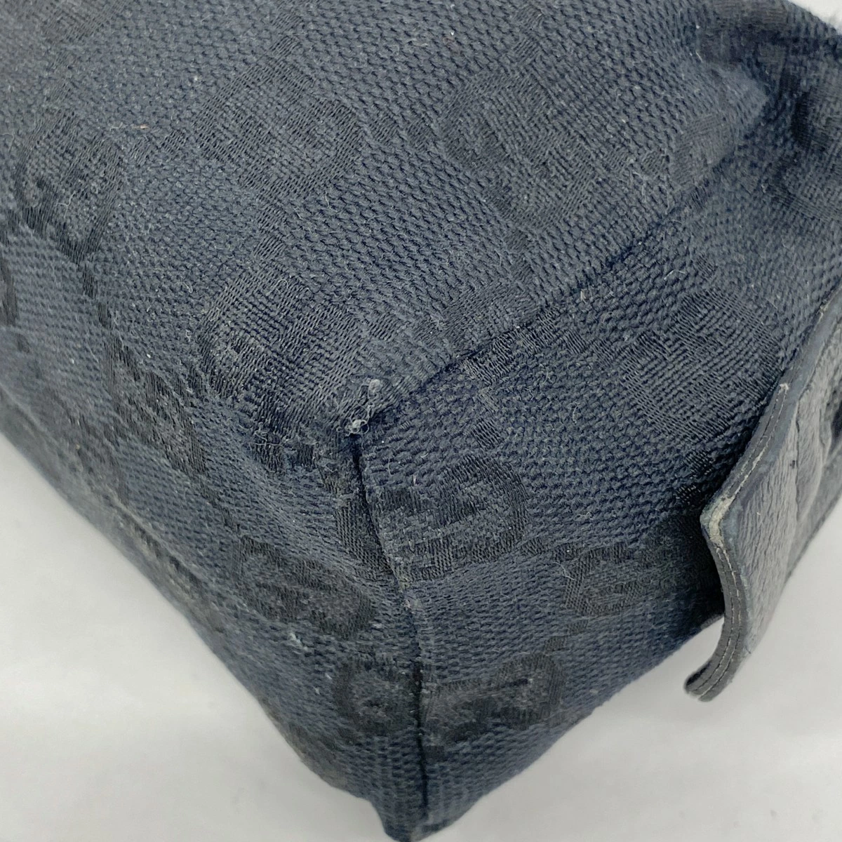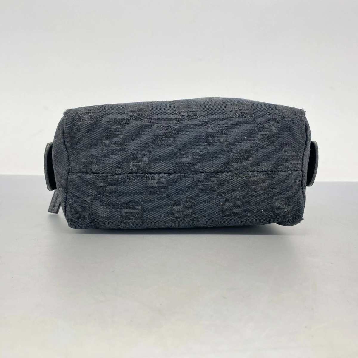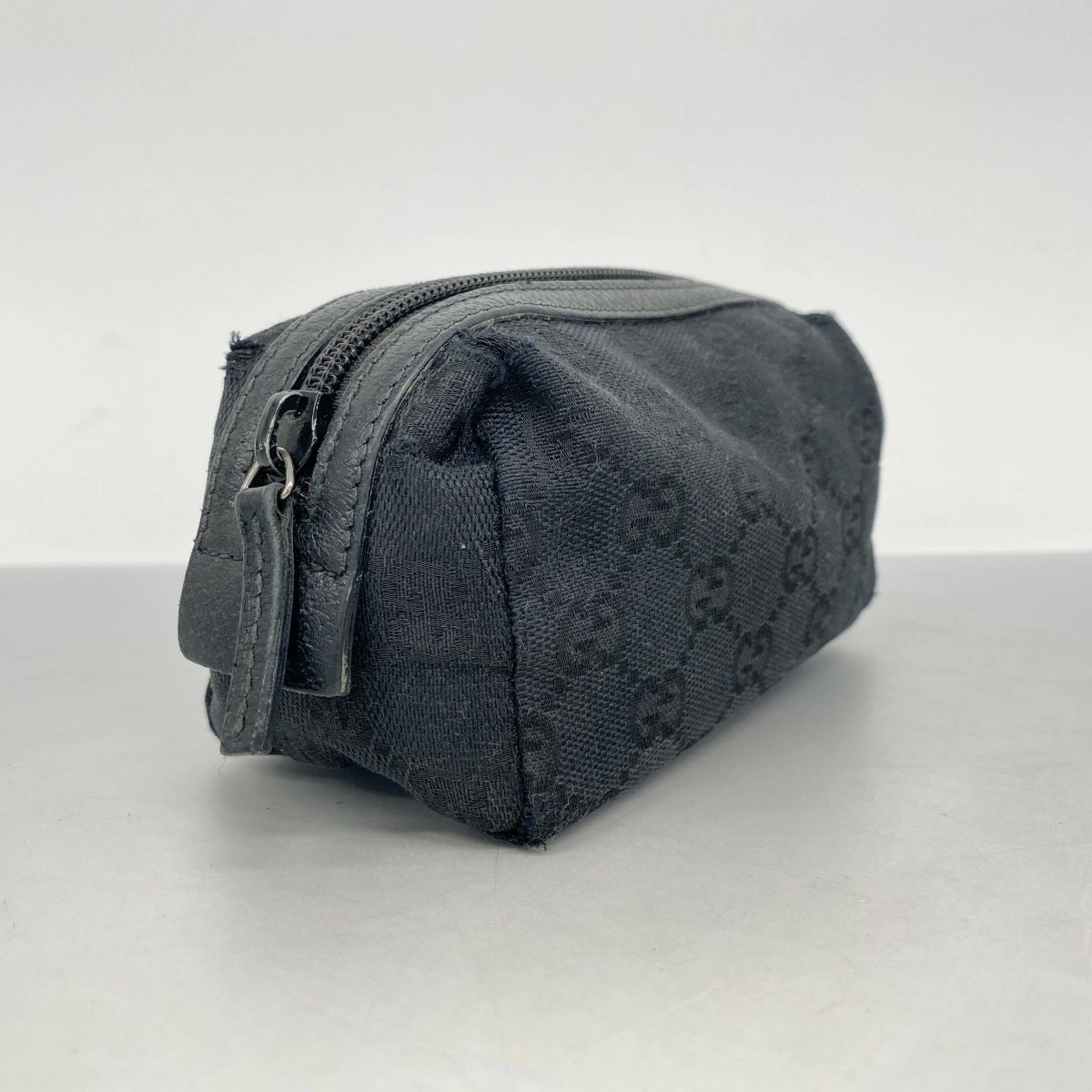 [5oe5178] Gucci GG Canvas Pouch 245947, Black Canvas, Silver Hardware, Pre-owned, Women's