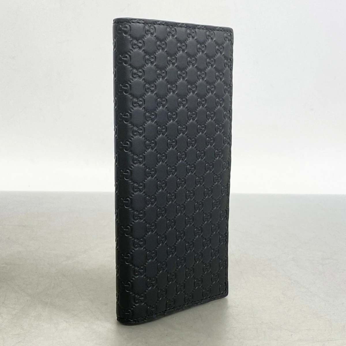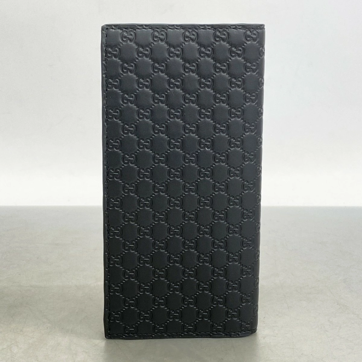 [5oe5271] Gucci Micro Guccissima Long Wallet 449245 Leather Black [Pre-owned] Men's