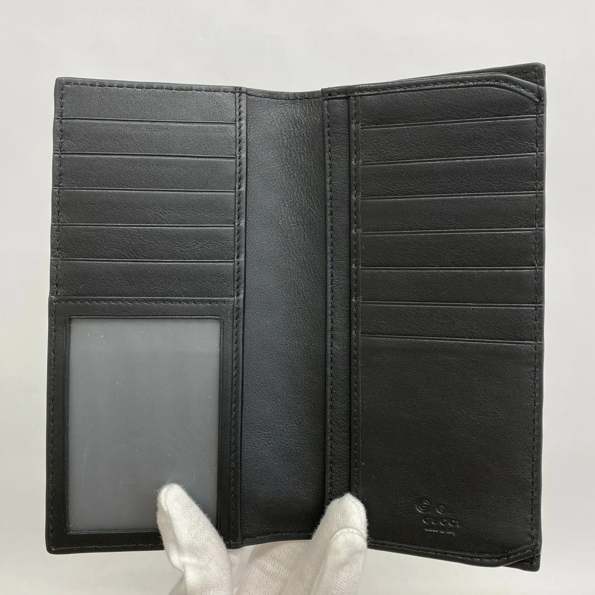 【5oe5271】グッチ 長札入れ マイクログッチシマ 449245 レザー ブラック【中古】メンズ