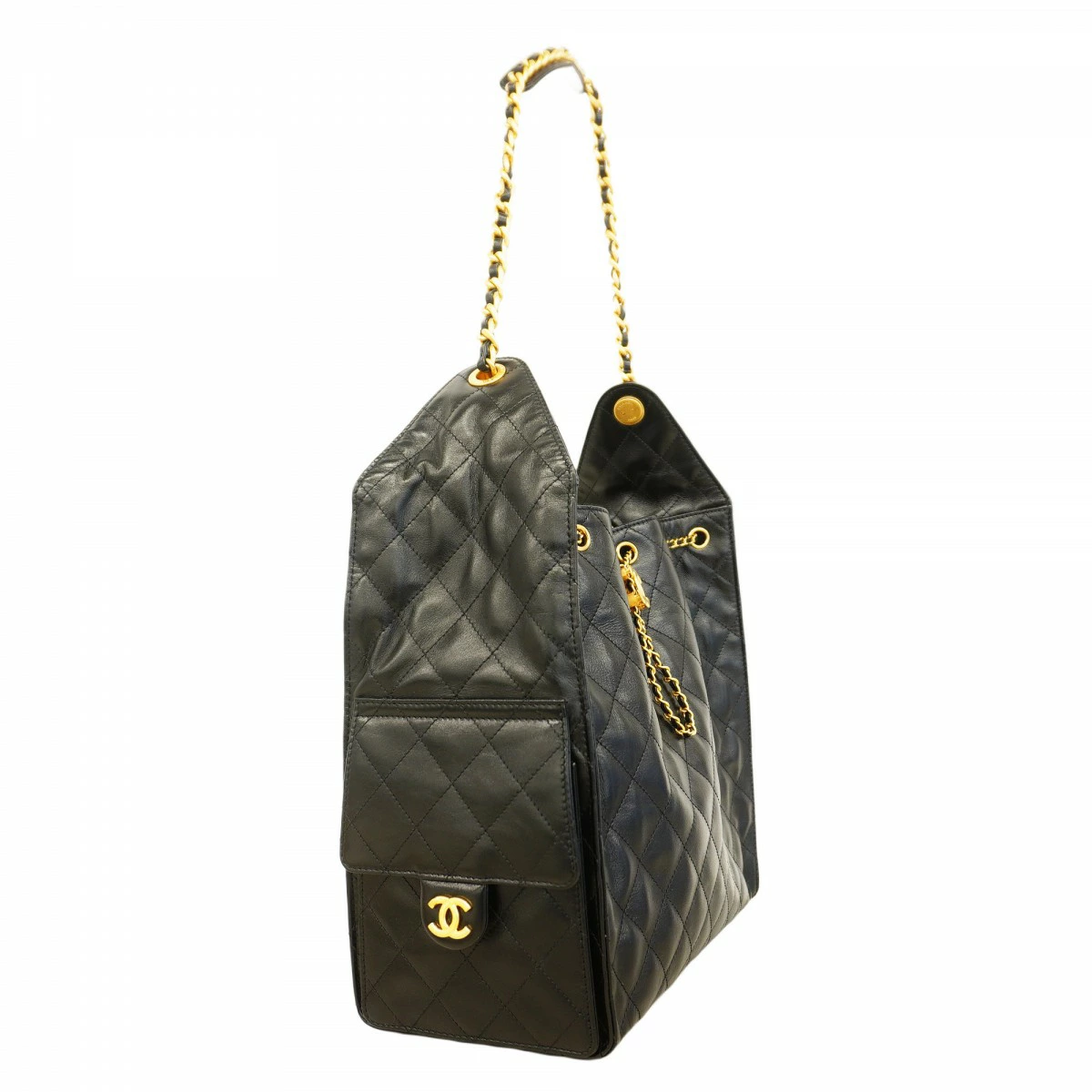 【5oe5468-h】シャネル ショルダーバッグ チェーンショルダー シャネル25 グレインカーフスキン ブラック シャンパンゴールド金具【中古】レディース