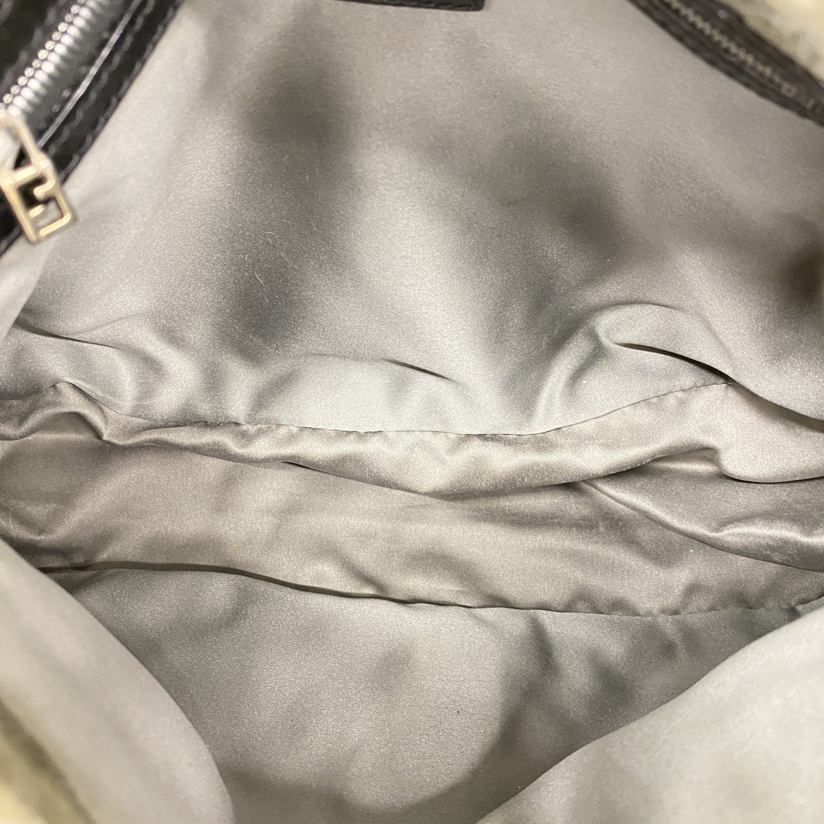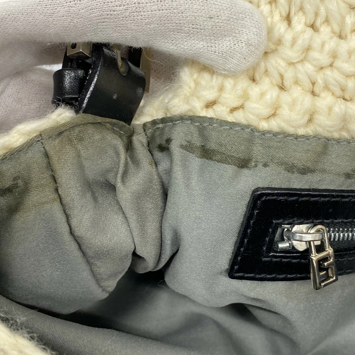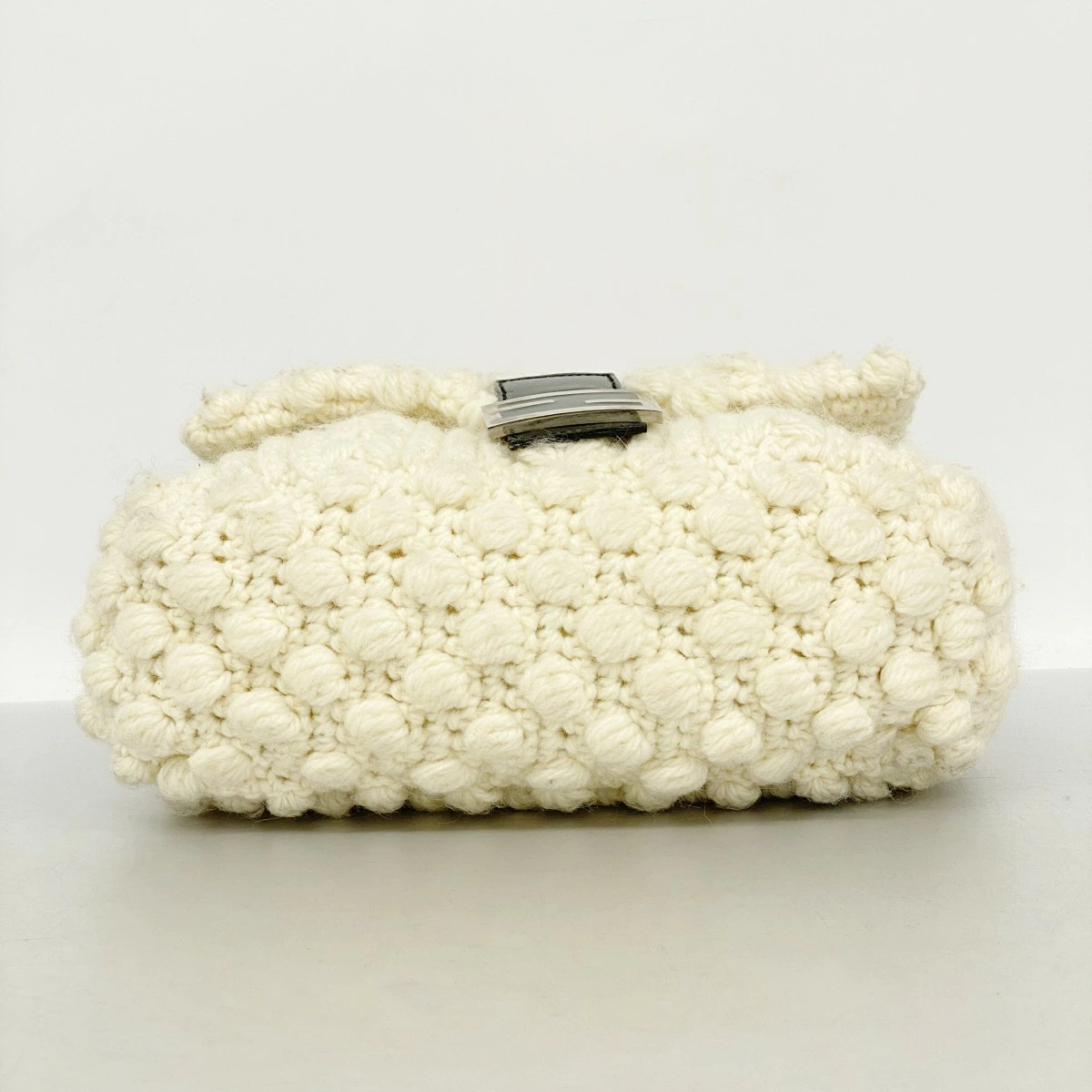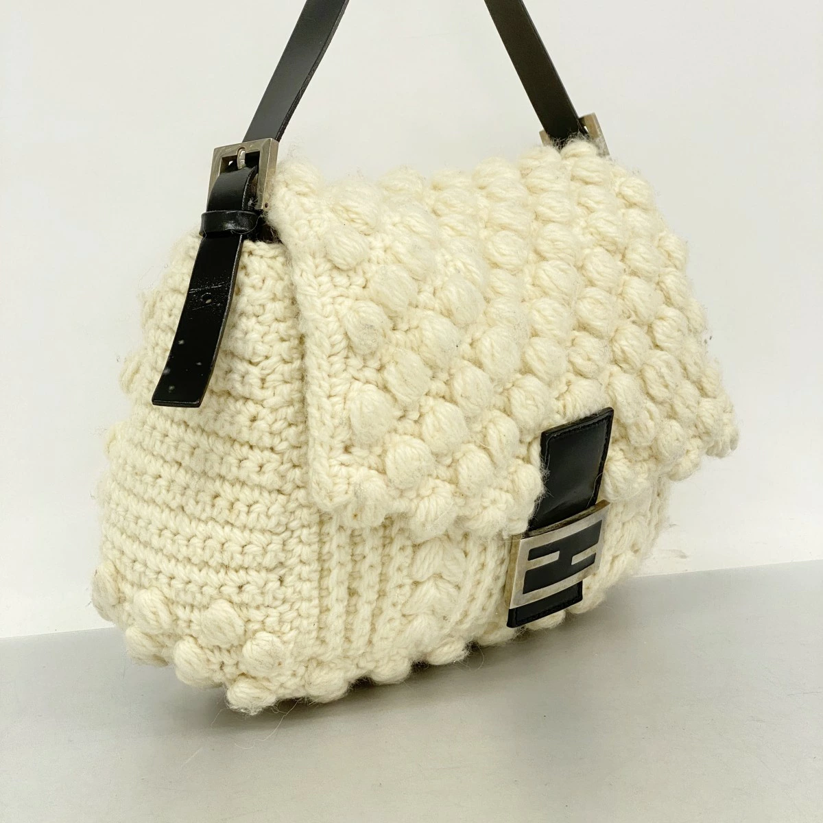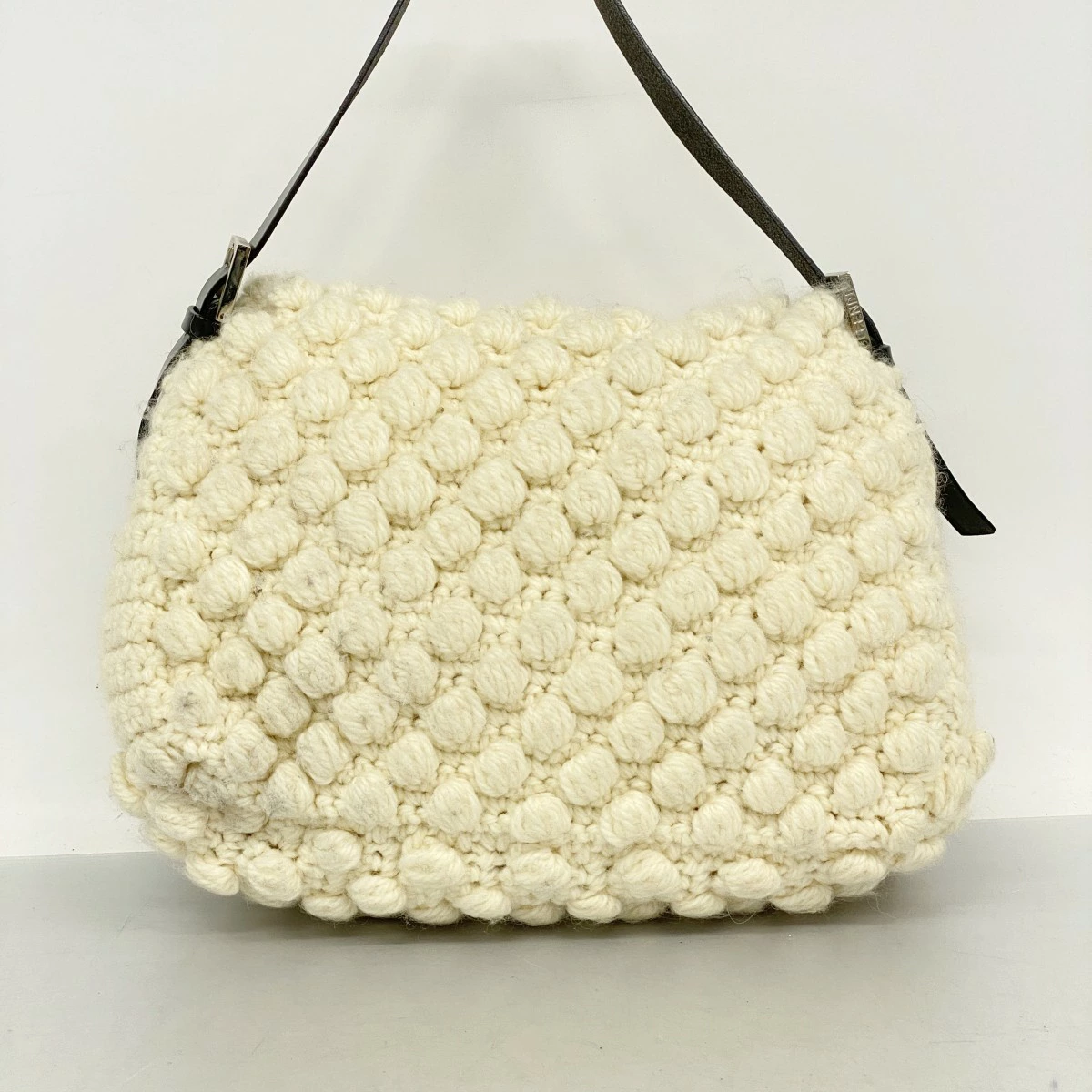 【5oe5493-h】フェンディ ショルダーバッグ マンマバケット ニット ホワイト ブラック シルバー金具【中古】レディース