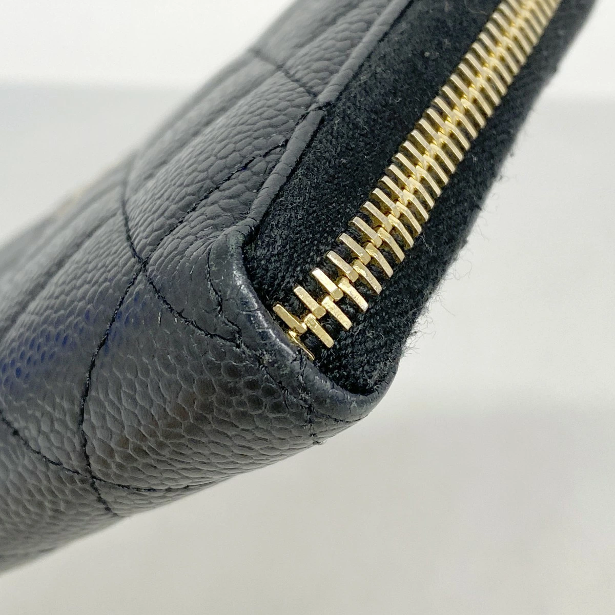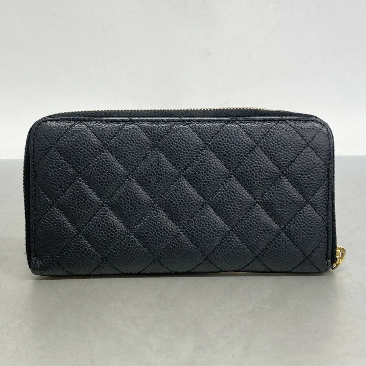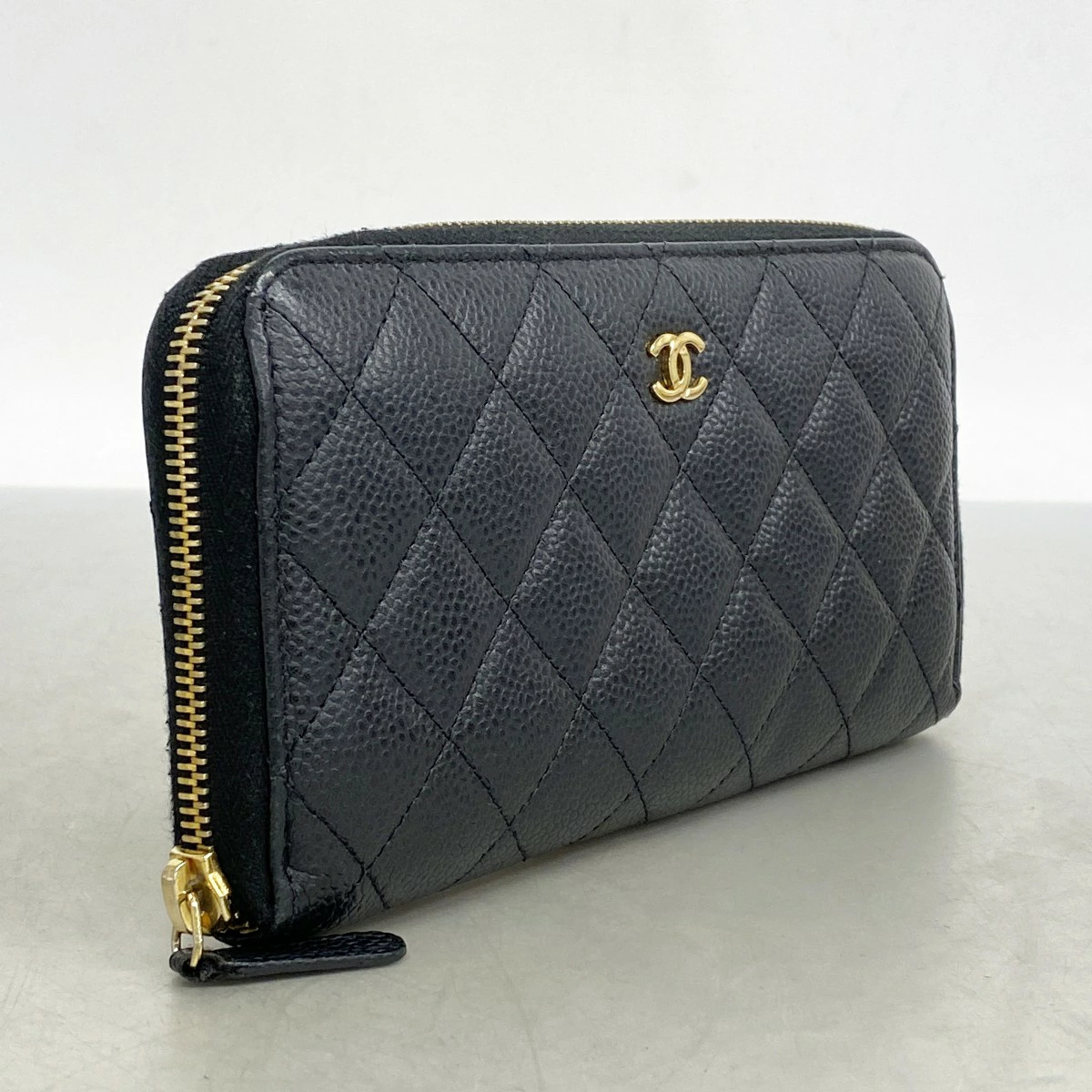 【5oe5550】シャネル 長財布 マトラッセ キャビアスキン ブラック ゴールド金具【中古】レディース