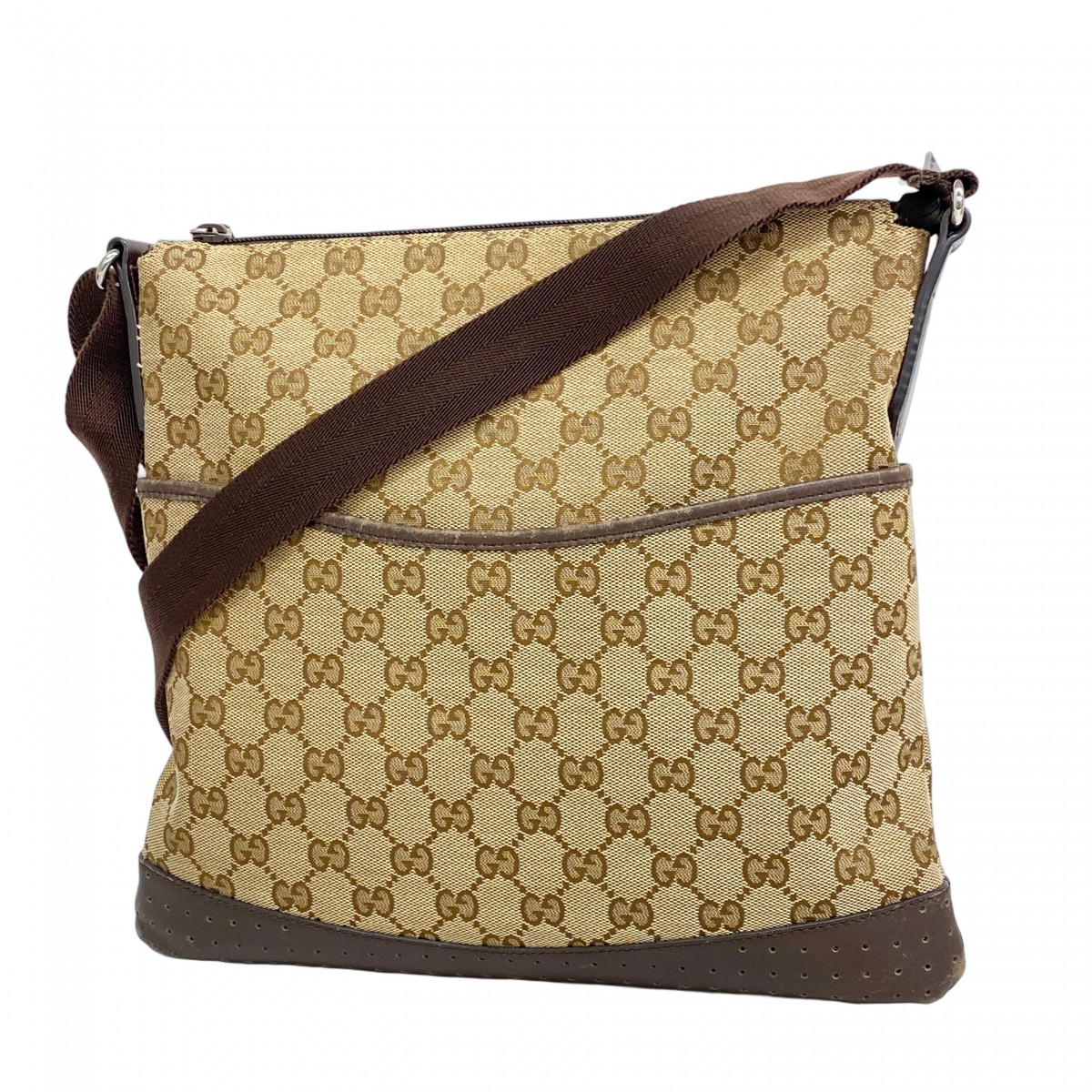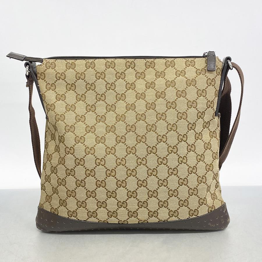 【5oe5551】グッチ ショルダーバッグ GGキャンバス 145857 キャンバス ブラウン シルバー金具【中古】メンズ レディース ユニセックス
