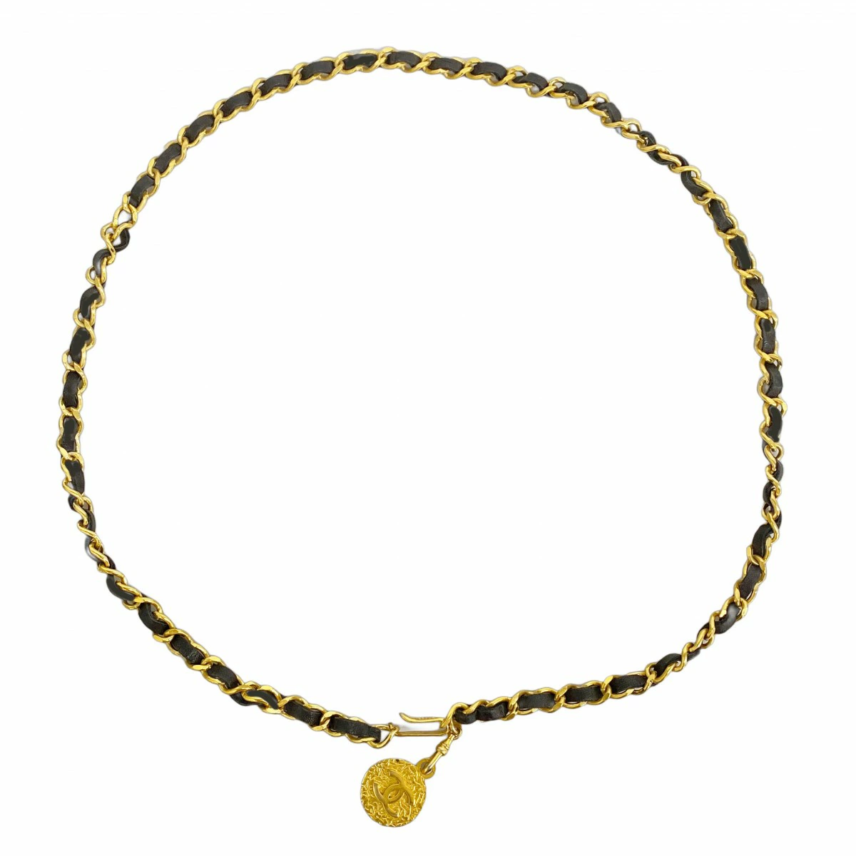 【5oe5613】シャネル ベルト チェーン ブラック ゴールド金具【中古】レディース