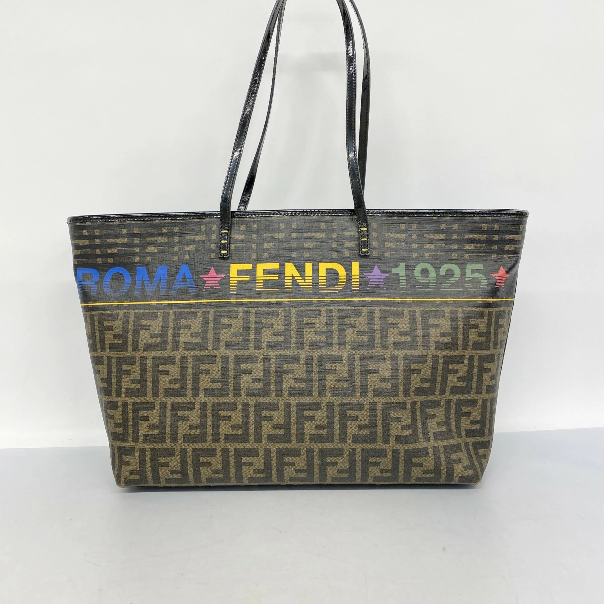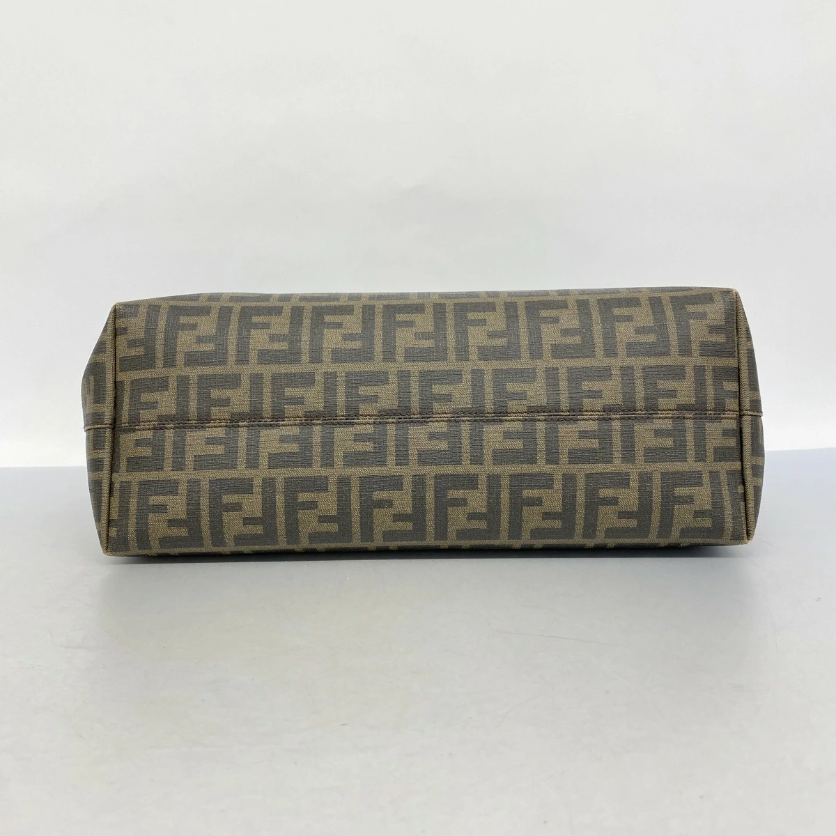 【5oe5847】フェンディ トートバッグ ズッカ PVC ブラウン ゴールド金具【中古】レディース