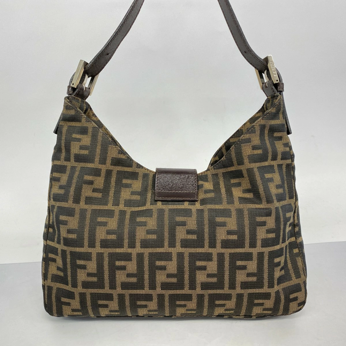 【5oe5941】フェンディ ハンドバッグ ズッカ ナイロンキャンバス ブラウン シルバー金具【中古】レディース