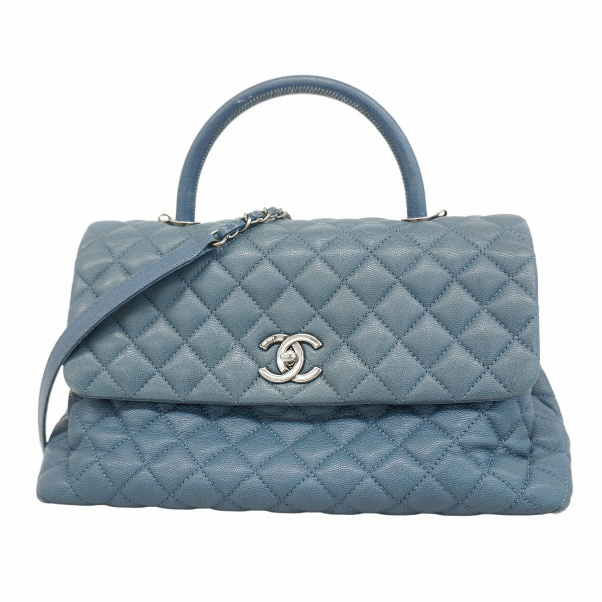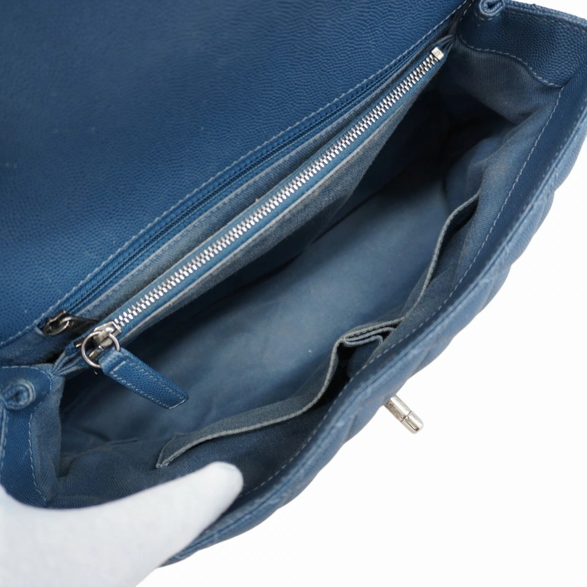 【5oe5983-h】シャネル ハンドバッグ チェーンショルダー ココハンドル キャビアスキン ブルー シルバー金具 2wayバッグ【中古】レディース
