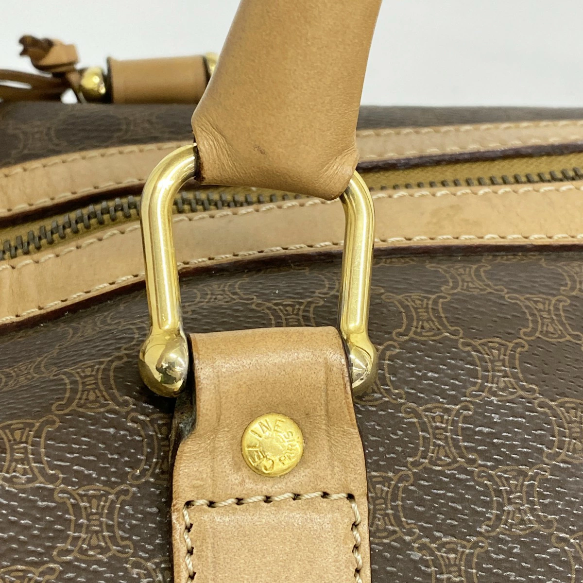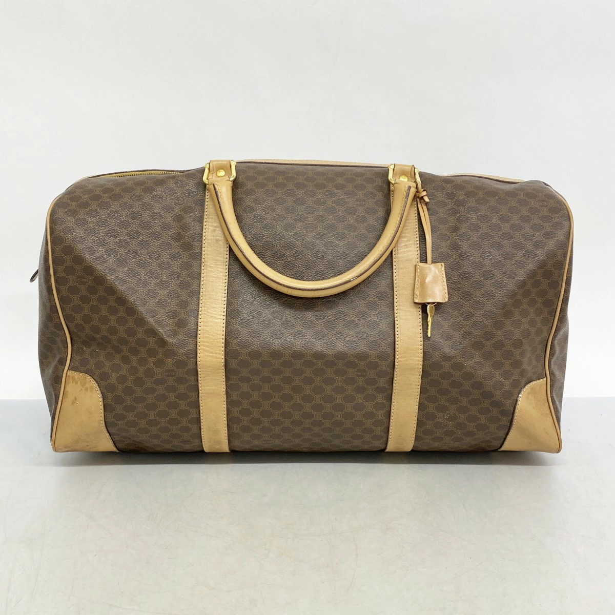 【5oe6280】セリーヌ ボストンバッグ マカダム PVC ブラウン ゴールド金具【中古】メンズ レディース ユニセックス