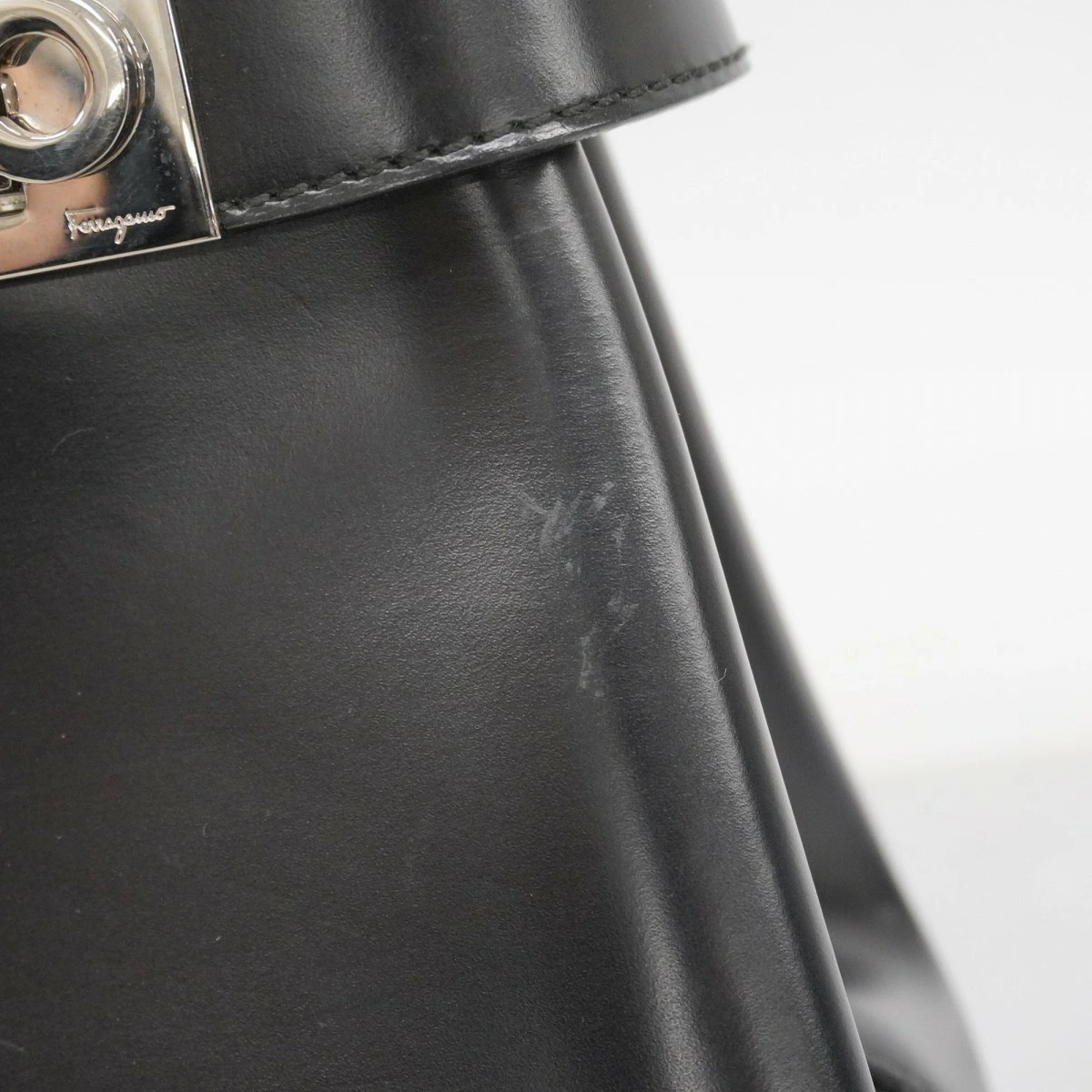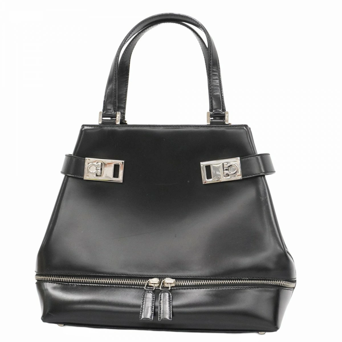 【5of6433】サルヴァトーレフェラガモ ハンドバッグ ガンチーニ レザー ブラック シルバー金具【中古】レディース