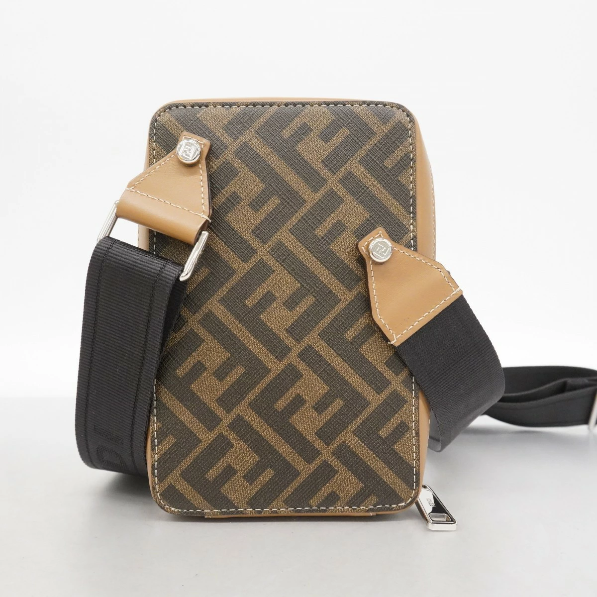【5of6434】フェンディ ショルダーバッグ ズッカ レザー PVC ブラウン シルバー金具【中古】レディース