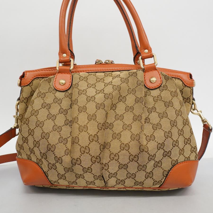 【5of6439】グッチ ハンドバッグ GGキャンバス スーキー 247902 キャンバス ブラウン オレンジ ゴールド金具 2wayバッグ【中古】レディース