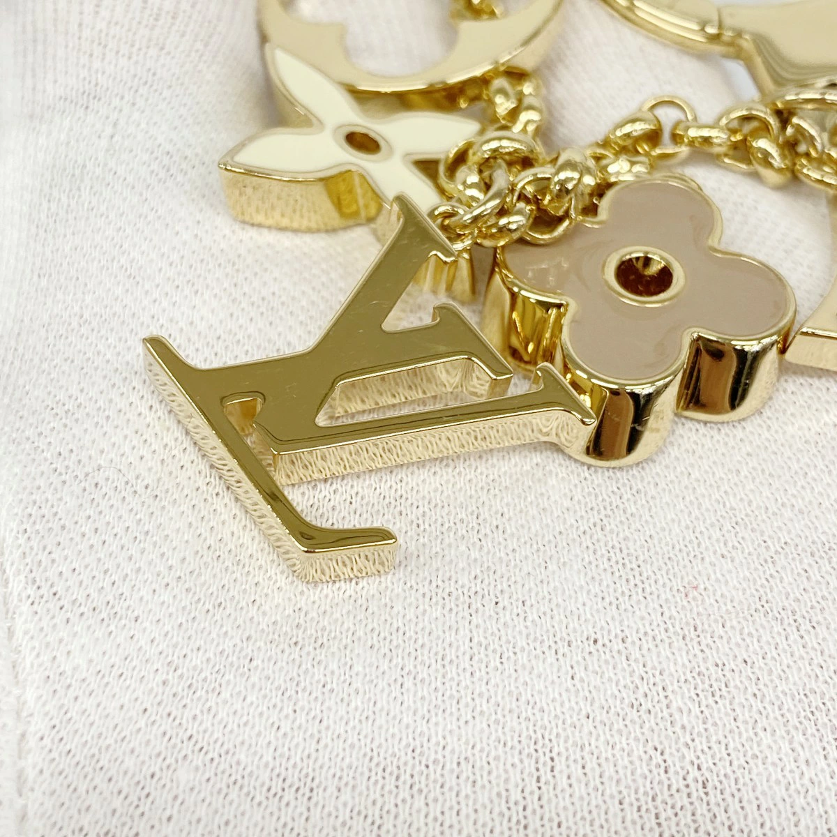 [5 of 6500] Louis Vuitton Fleur de Monogram Keychain M65111 Gold Ivory Pink [Pre-owned] Women's