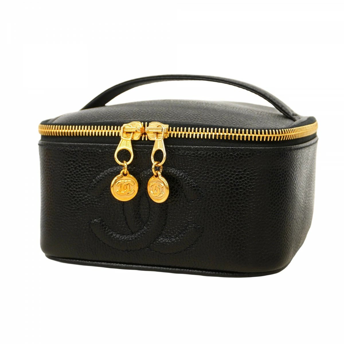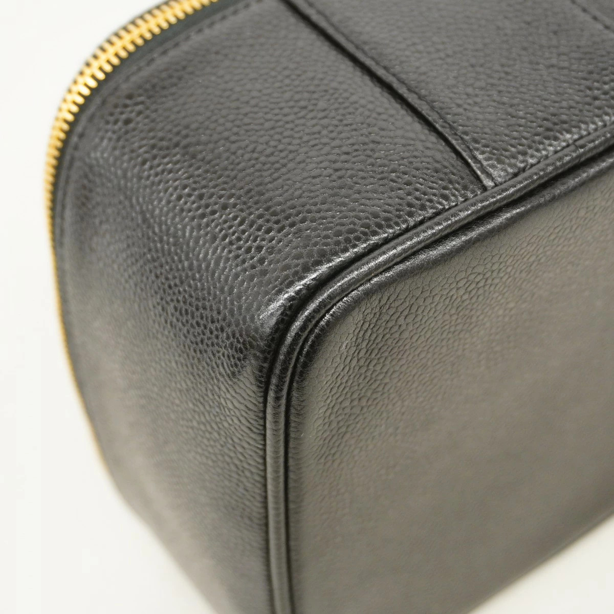 【5of6577-h】シャネル バニティバッグ キャビアスキン ブラック ゴールド金具【中古】レディース
