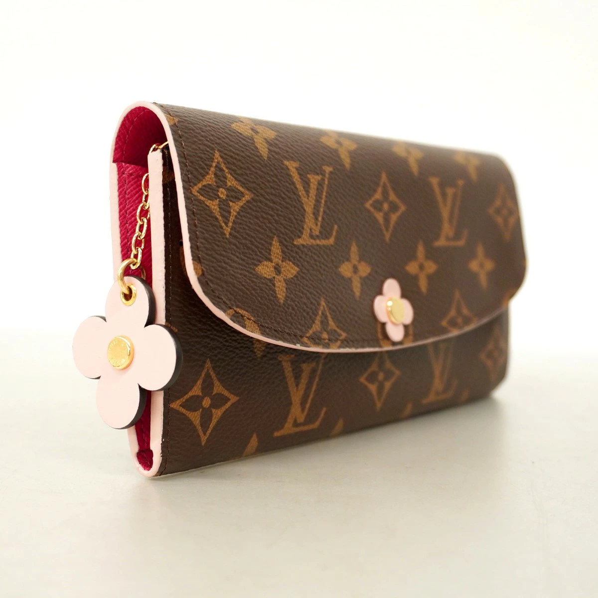 ★最終価格【5pa0249】ルイヴィトン 長財布 モノグラム ポルトフォイユエミリー フラワーチャーム M64202 ローズバレリーヌ【中古】レディース