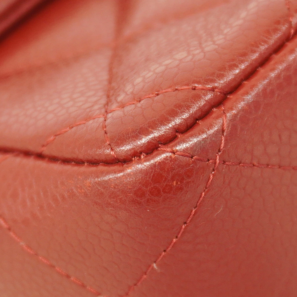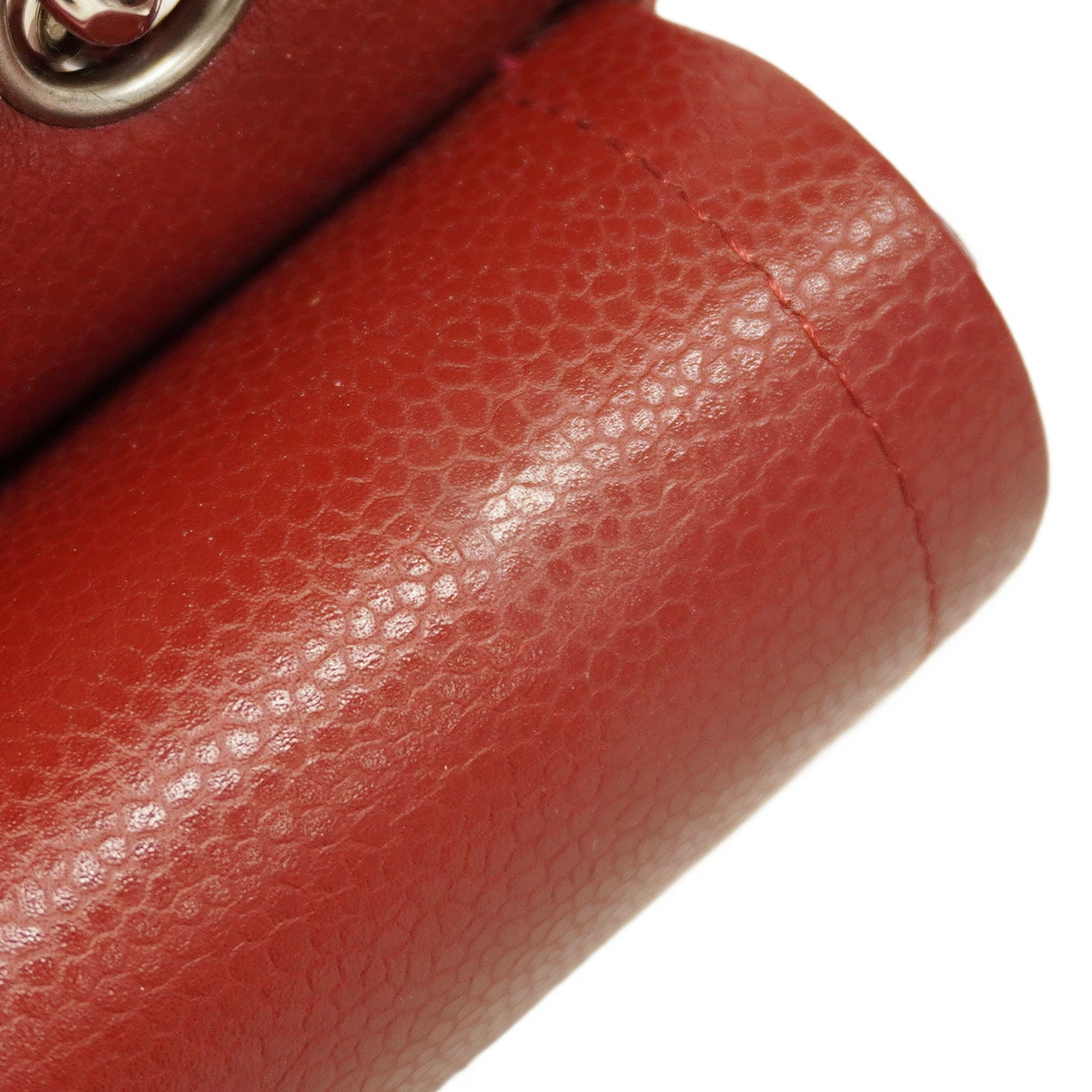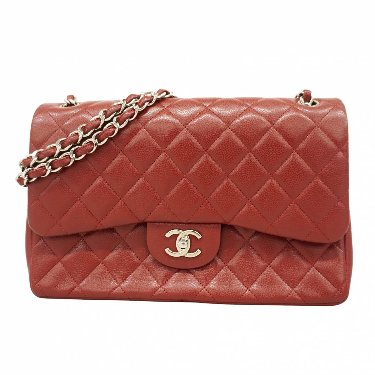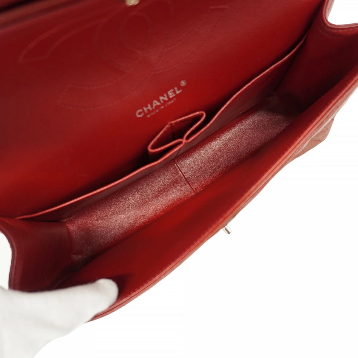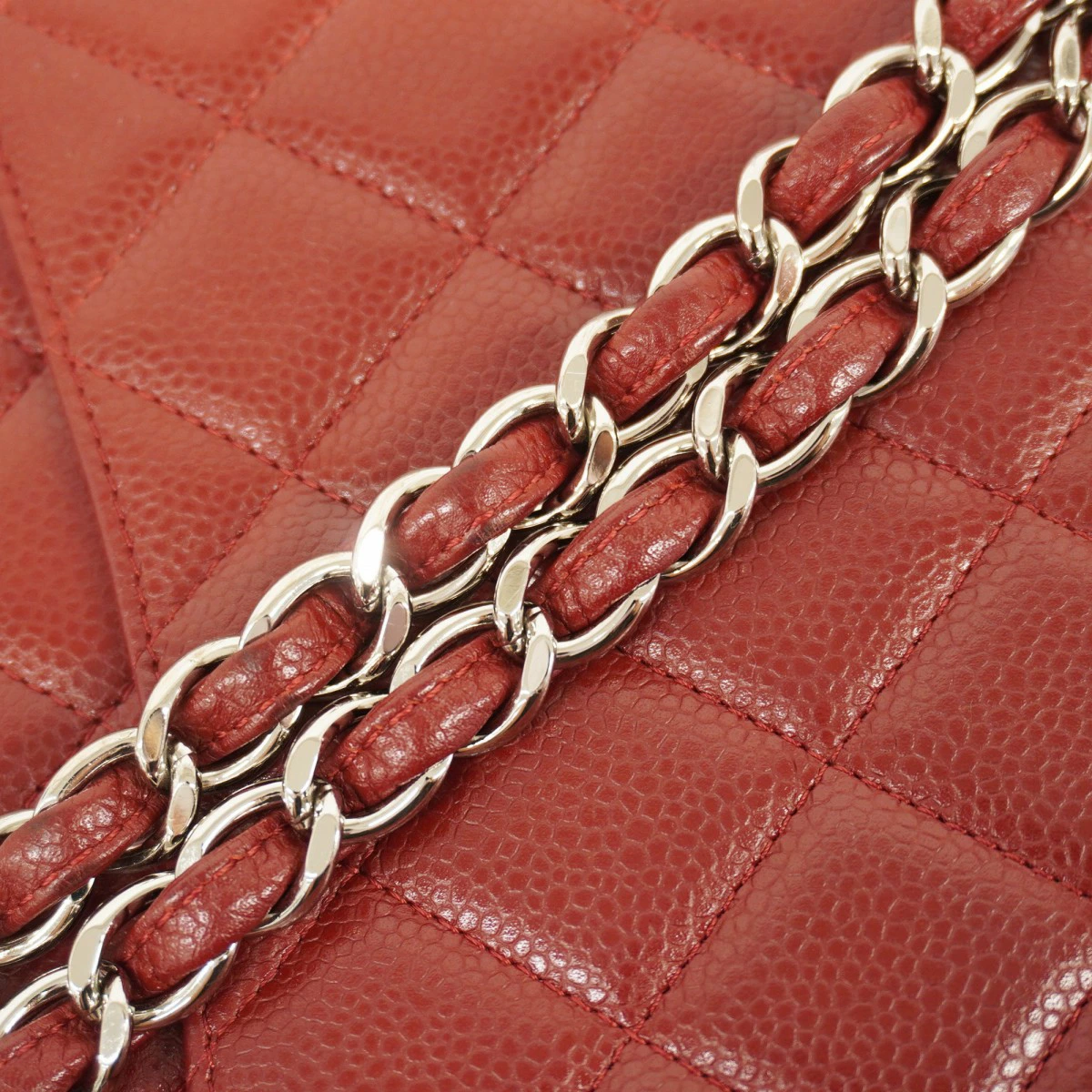 【5pa0307-h】シャネル ショルダーバッグ デカマトラッセ Wフラップ Wチェーン キャビアスキン レッド シルバー金具【中古】レディース