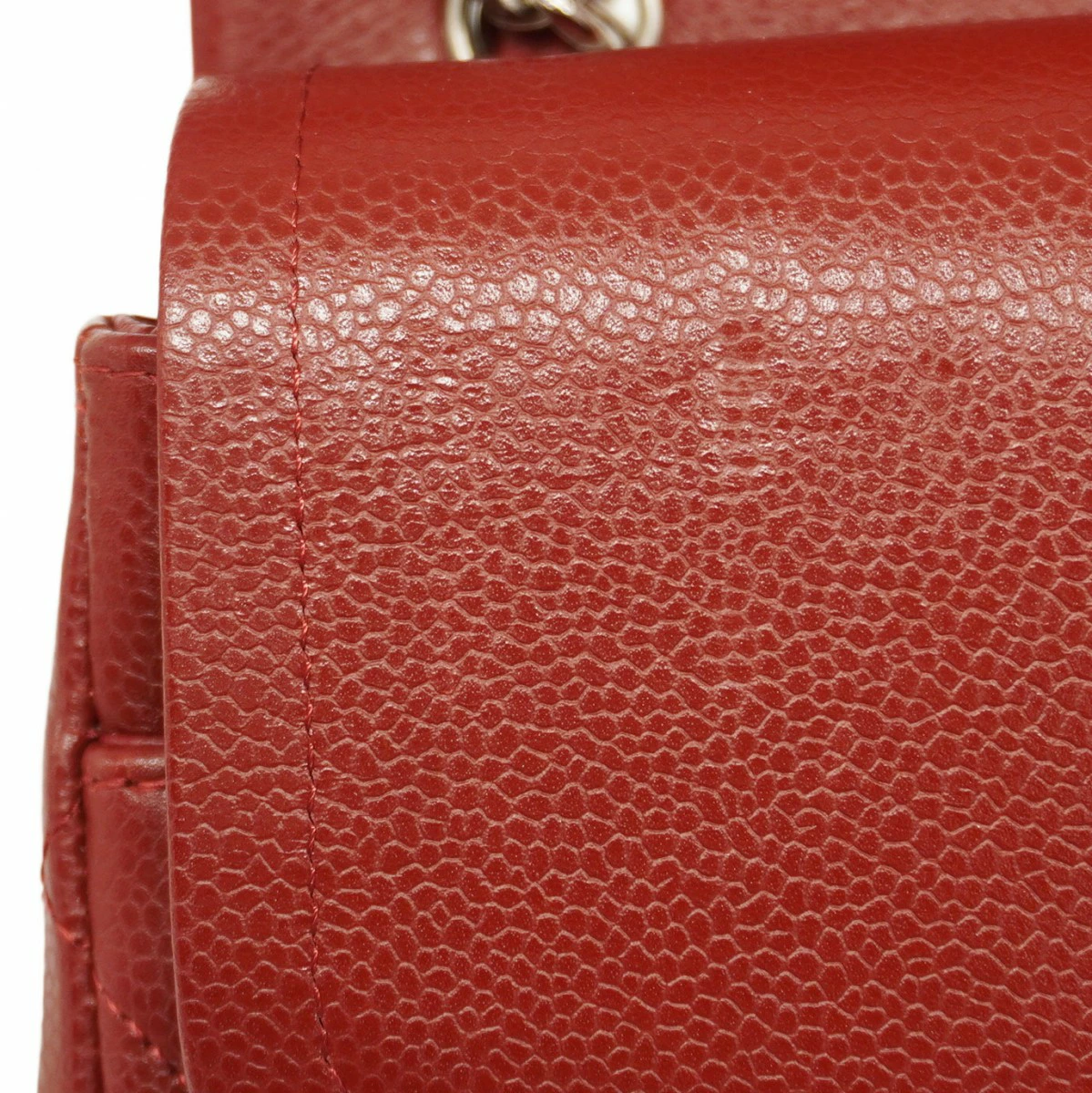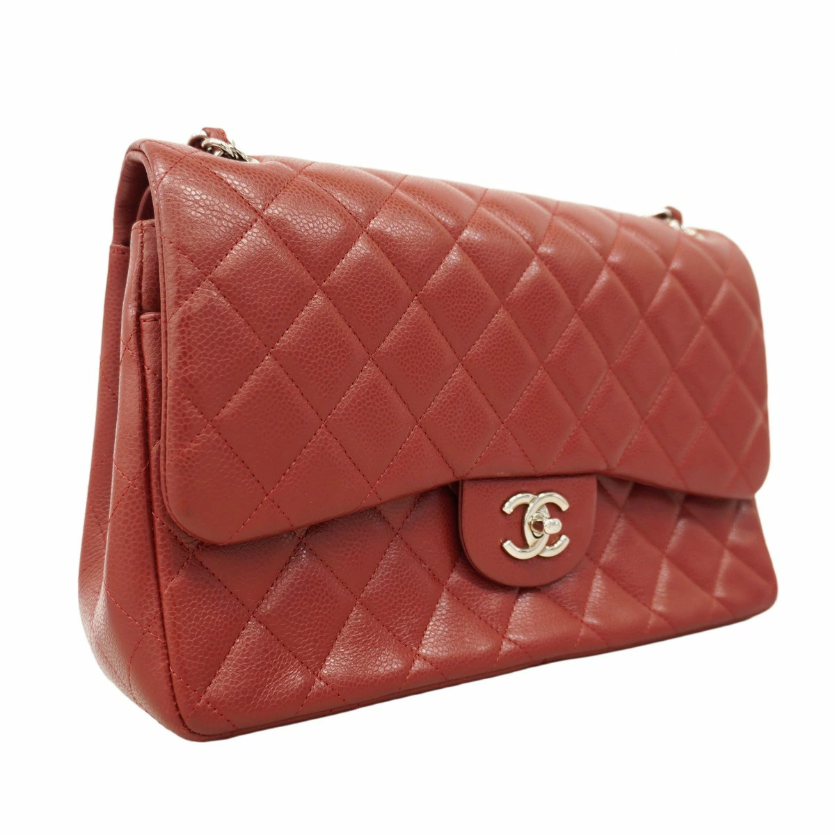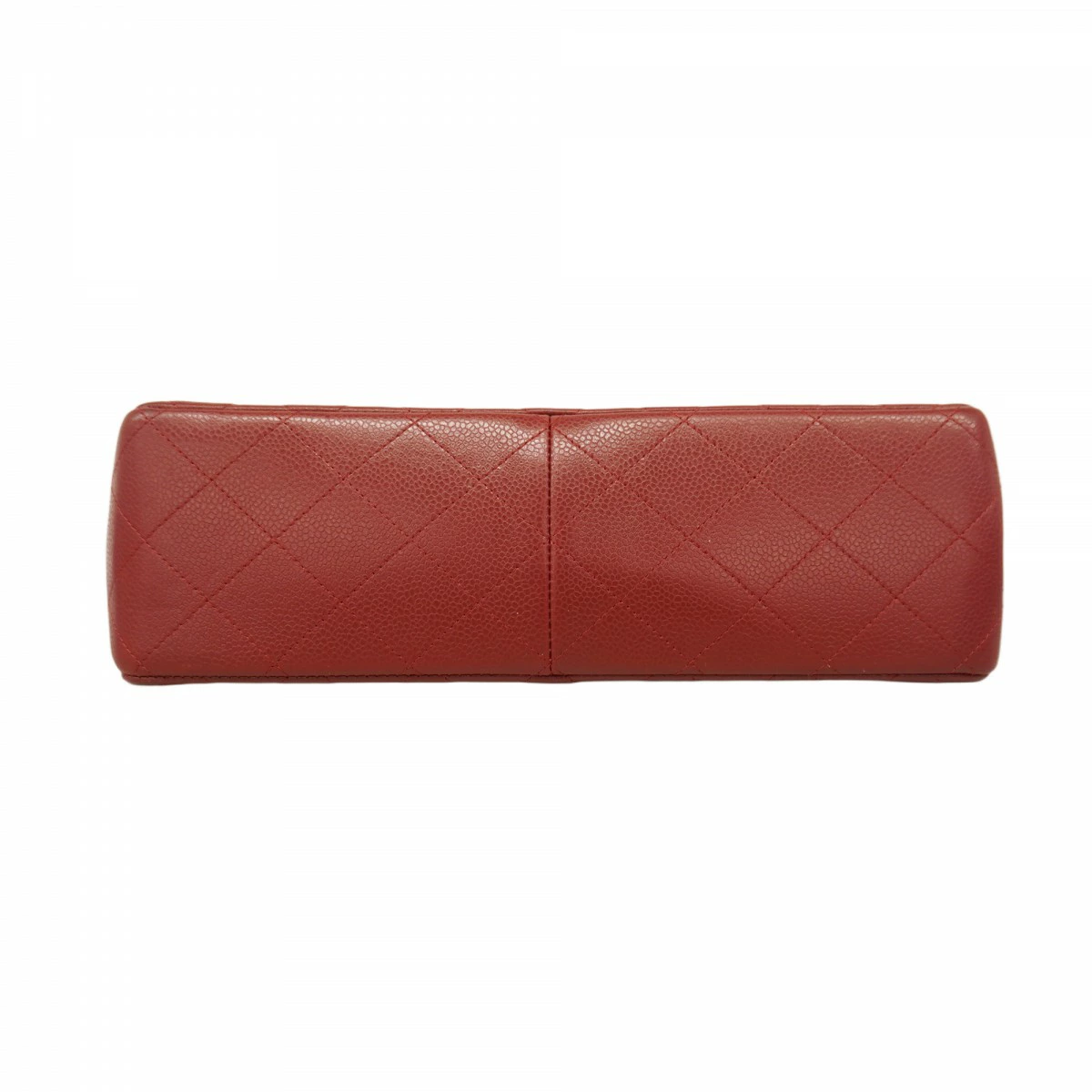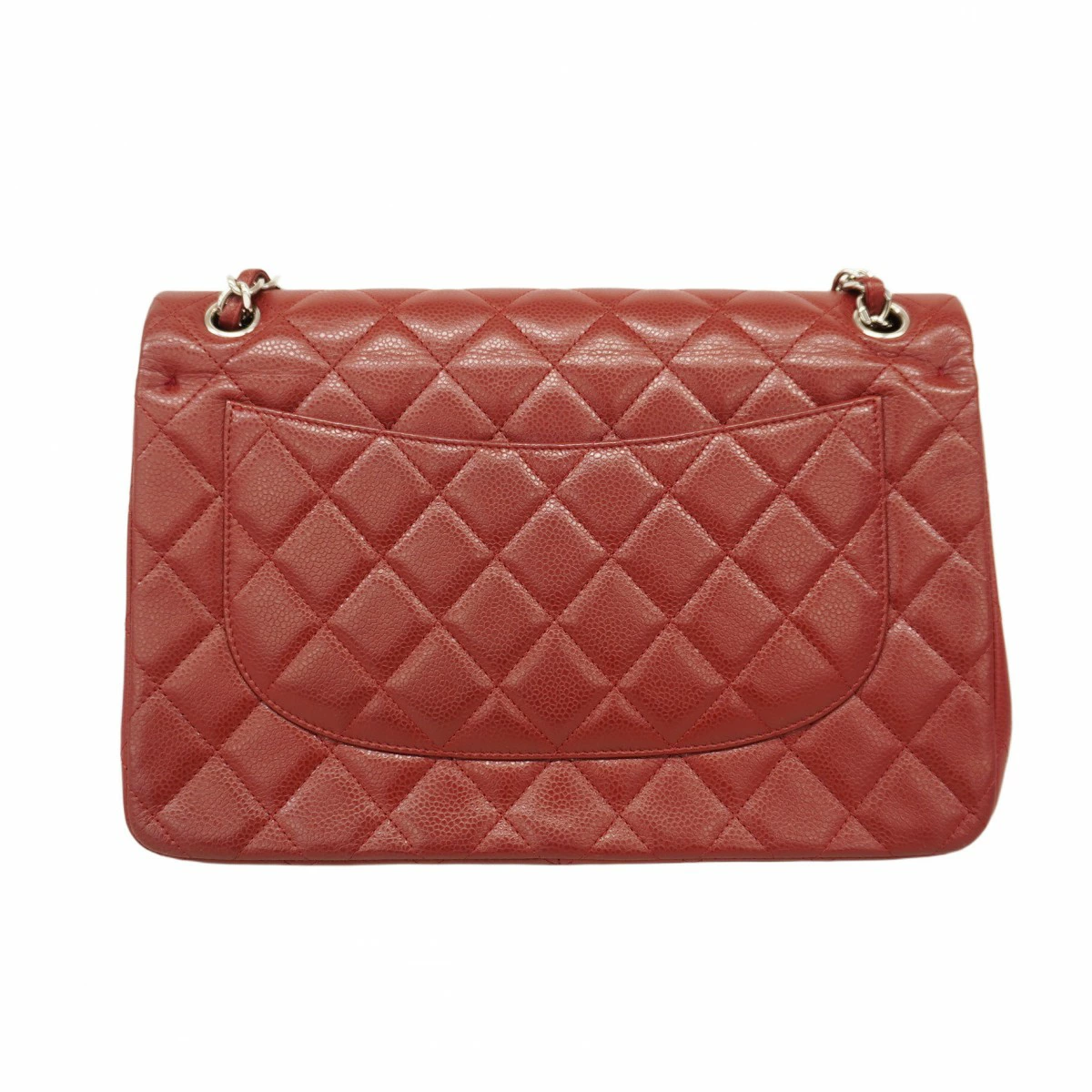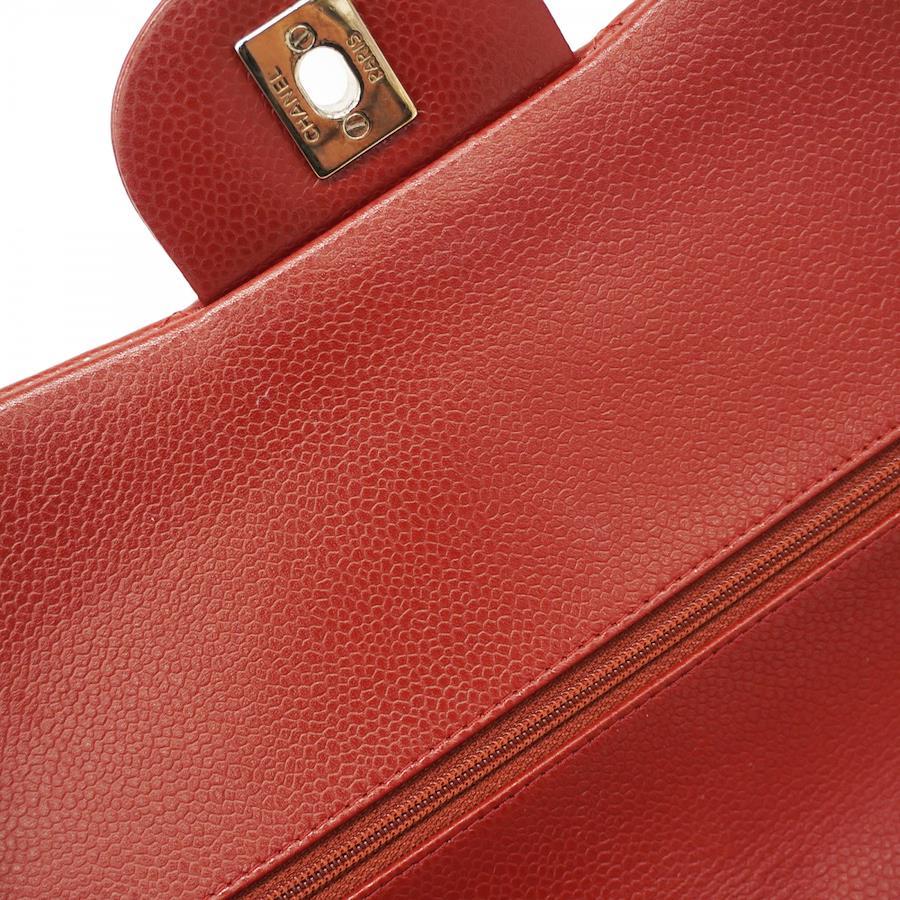 【5pa0307-h】シャネル ショルダーバッグ デカマトラッセ Wフラップ Wチェーン キャビアスキン レッド シルバー金具【中古】レディース