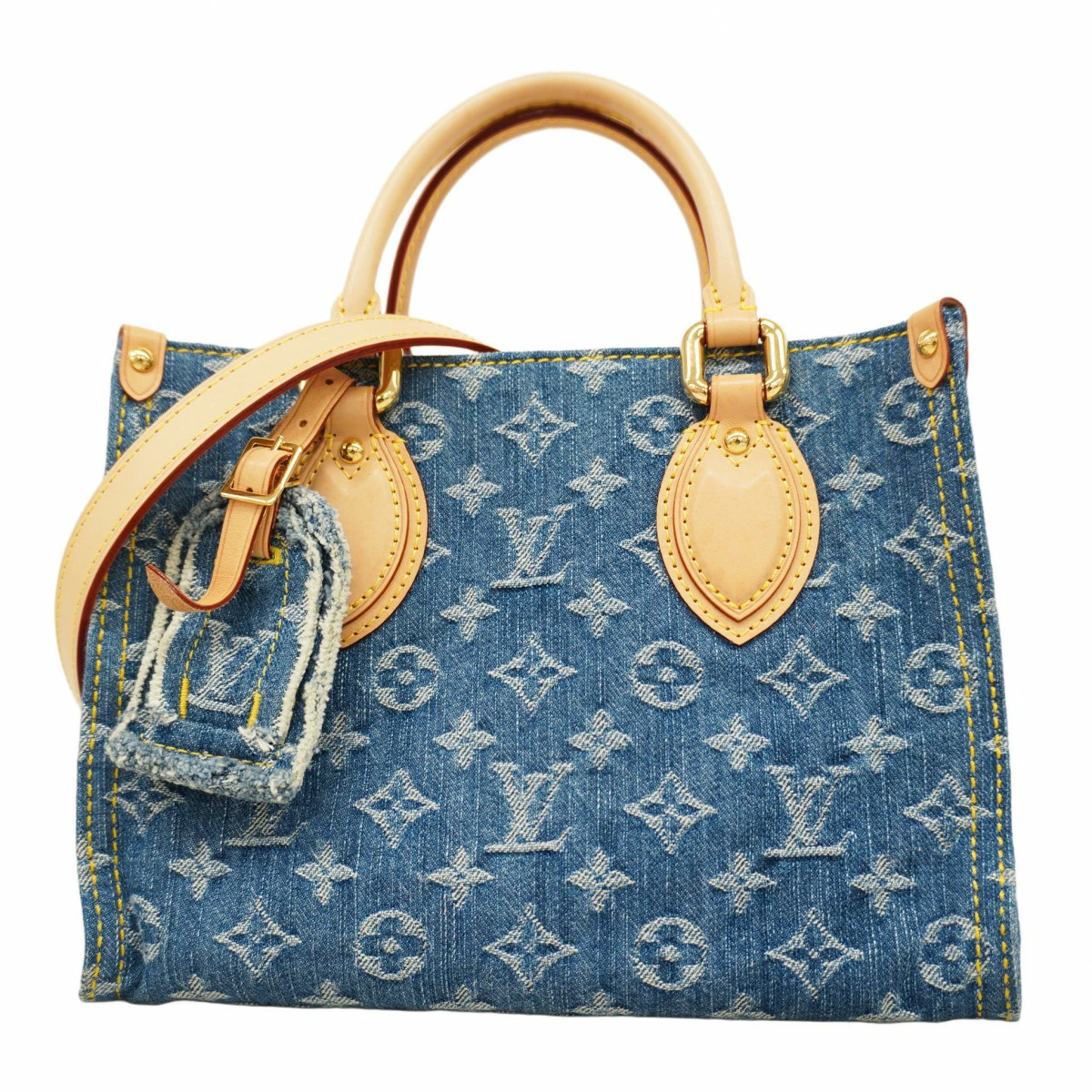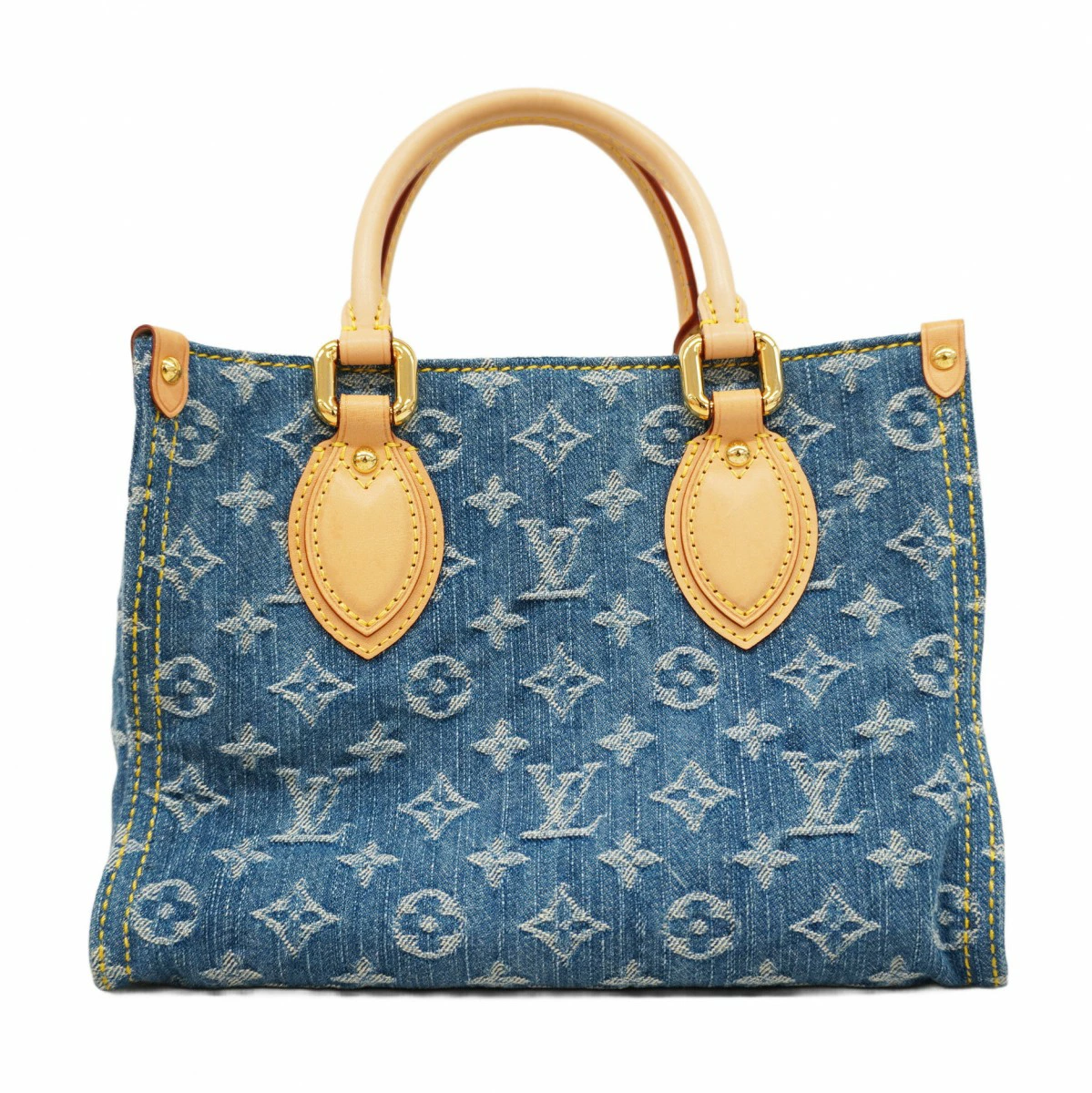 【5pa0431-h】ルイヴィトン ハンドバッグ モノグラム・デニム オンザゴーPM M14633 ブルー 2wayバッグ【中古】レディース