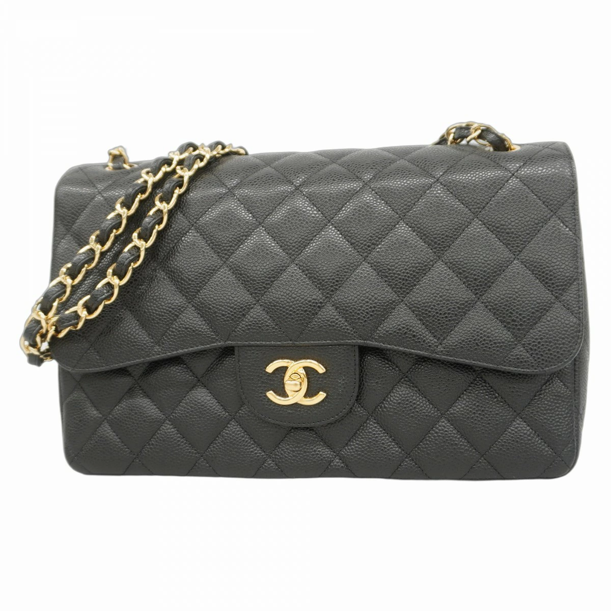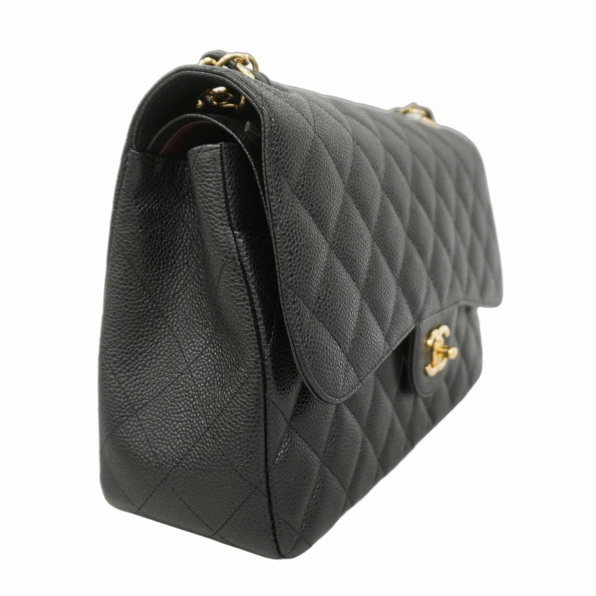 【5pa0712】シャネル ショルダーバッグ デカマトラッセ Wフラップ Wチェーン キャビアスキン ブラック ゴールド金具【中古】レディース