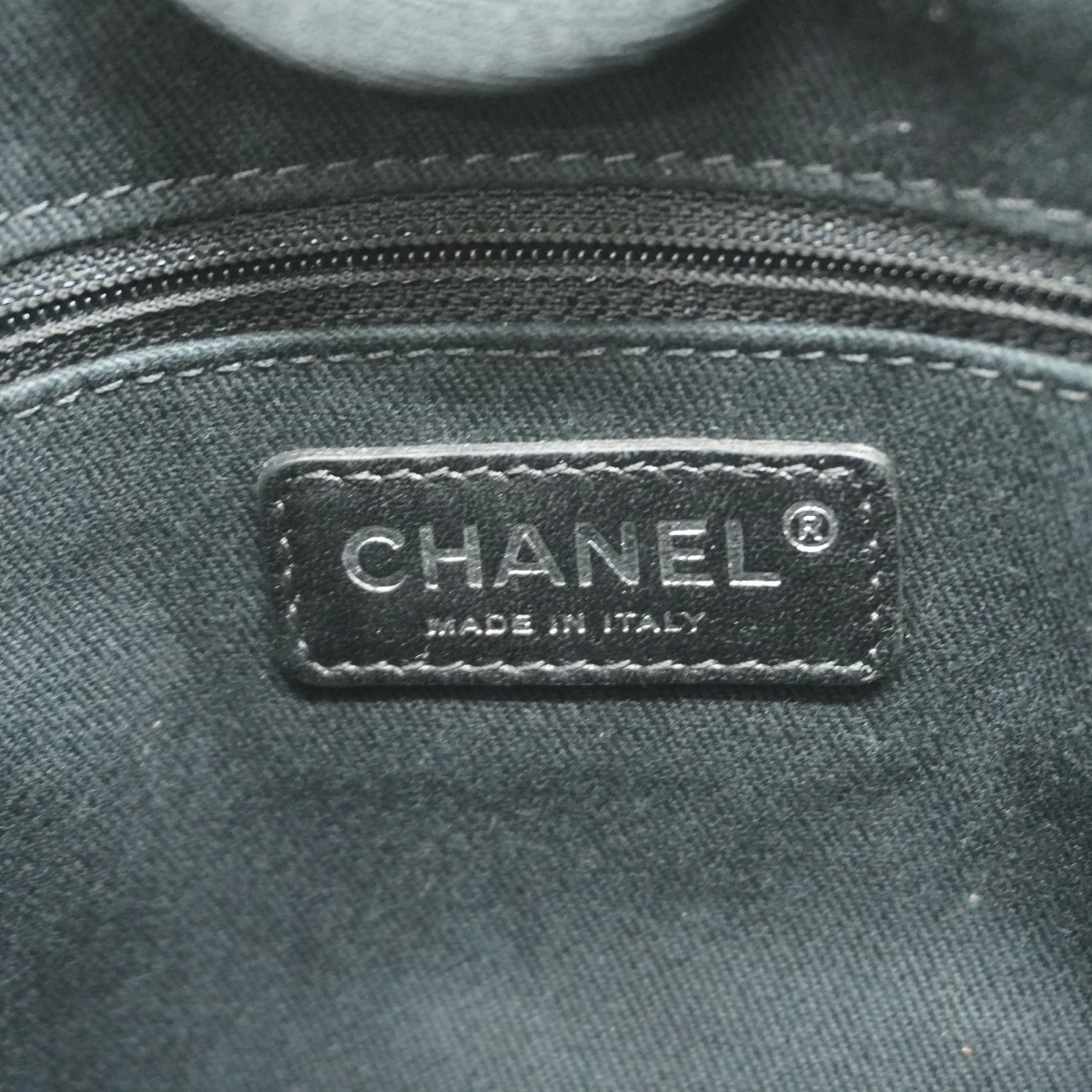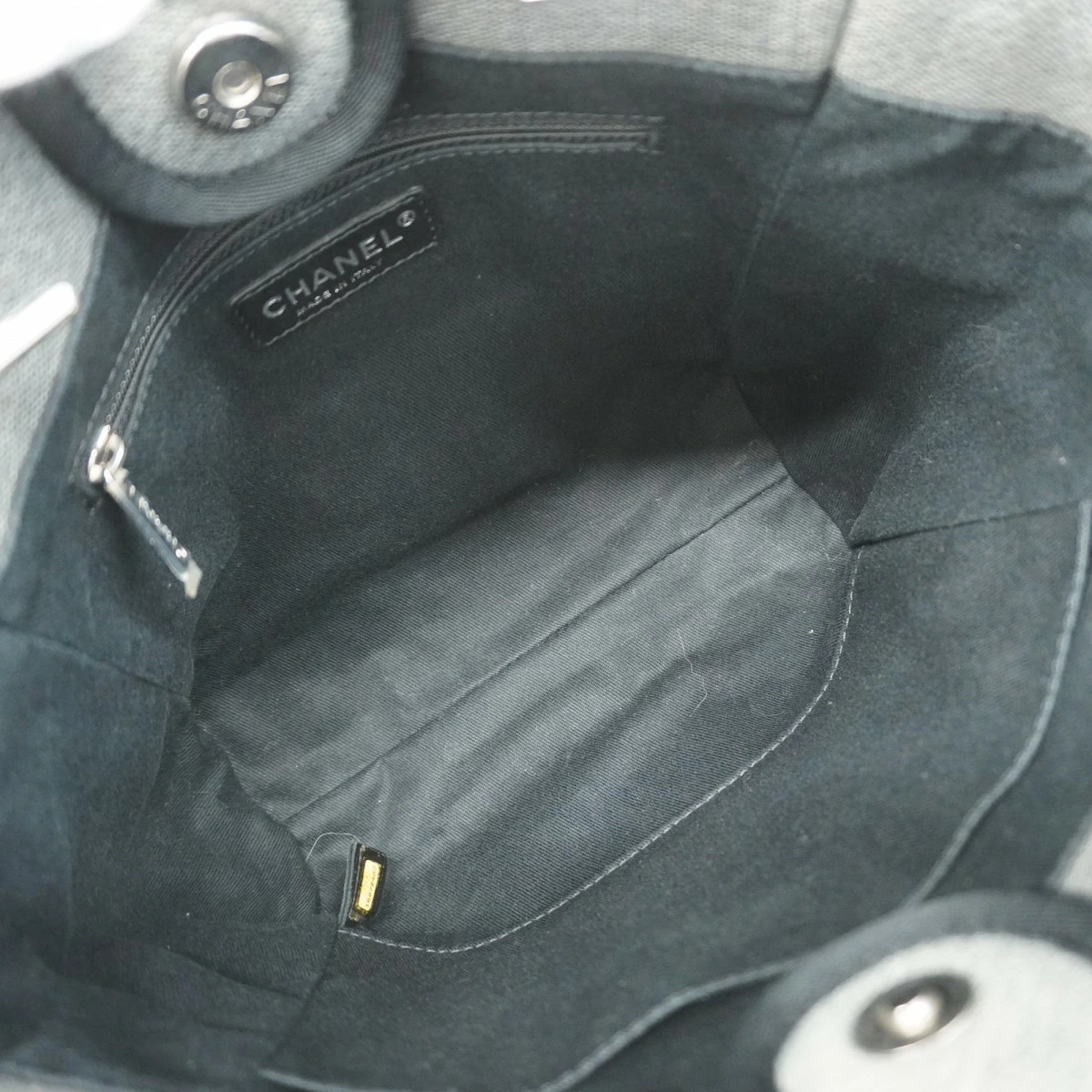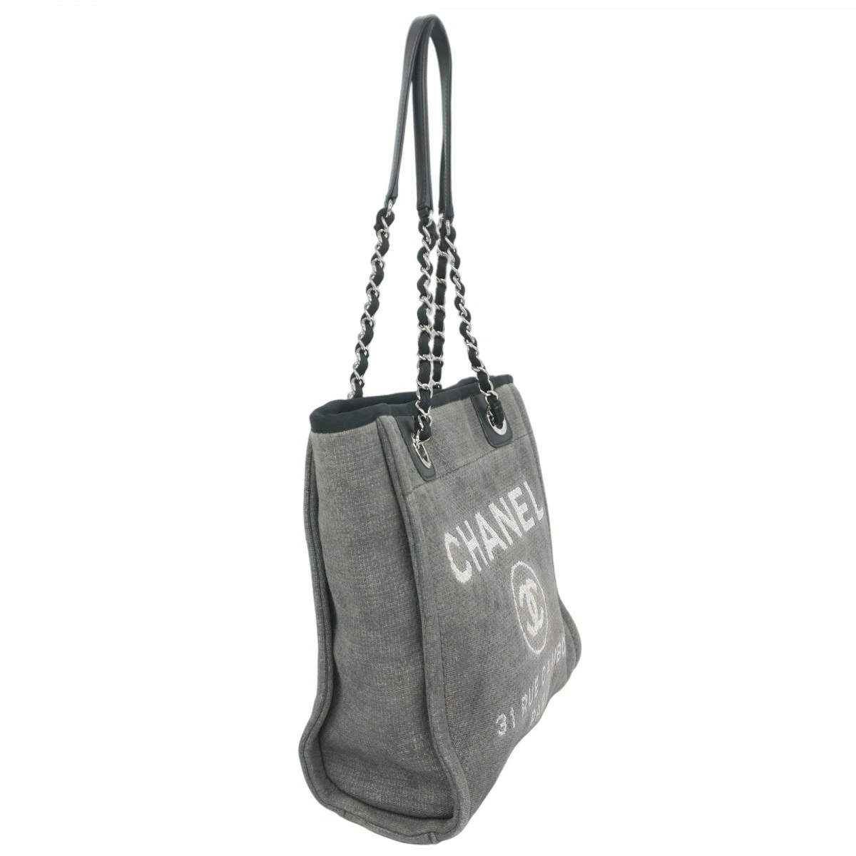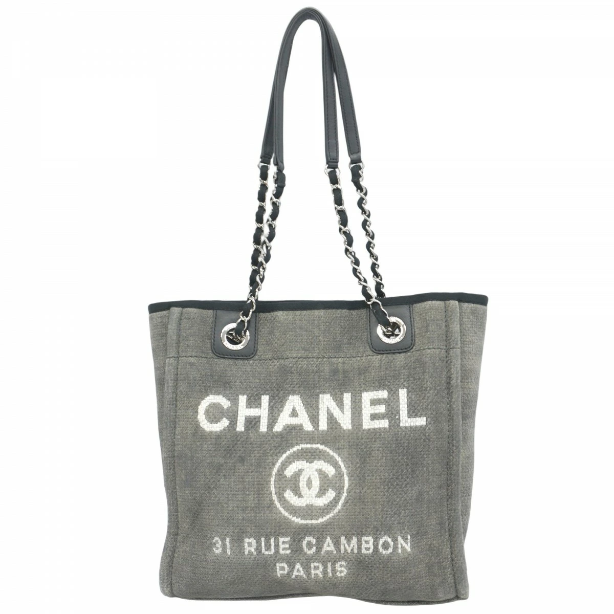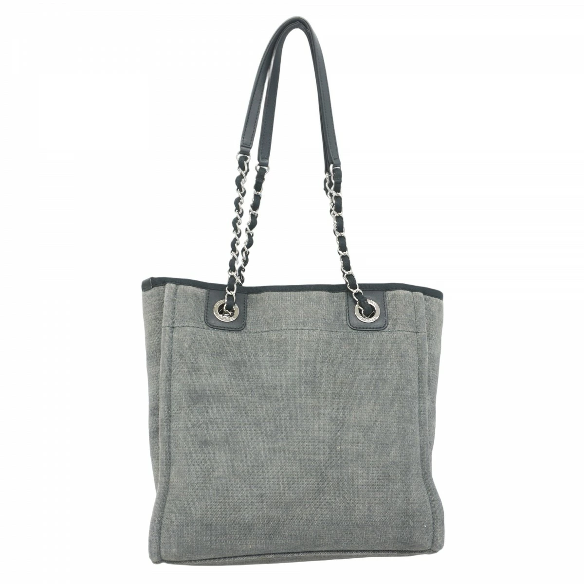 【5pa0717-h】シャネル トートバッグ ドーヴィル チェーンショルダー キャンバス グレー ブラック シルバー金具【中古】レディース