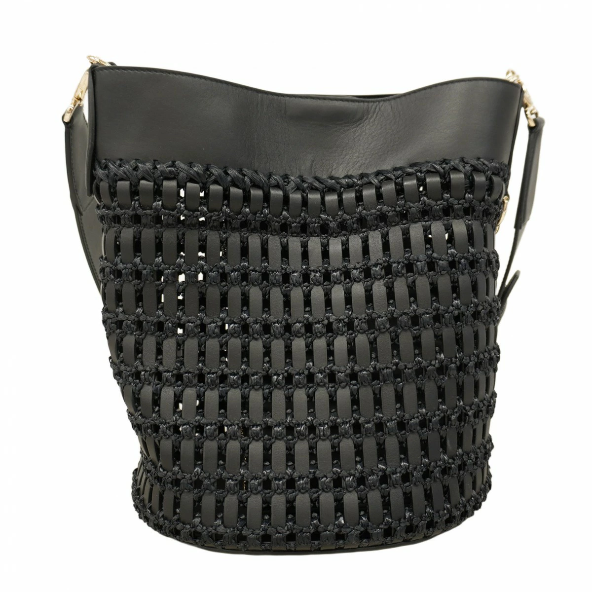 【5pa0795-h】サルヴァトーレフェラガモ ショルダーバッグ ガンチーニ バケット ラフィア ブラック シャンパンゴールド金具【中古】レディース