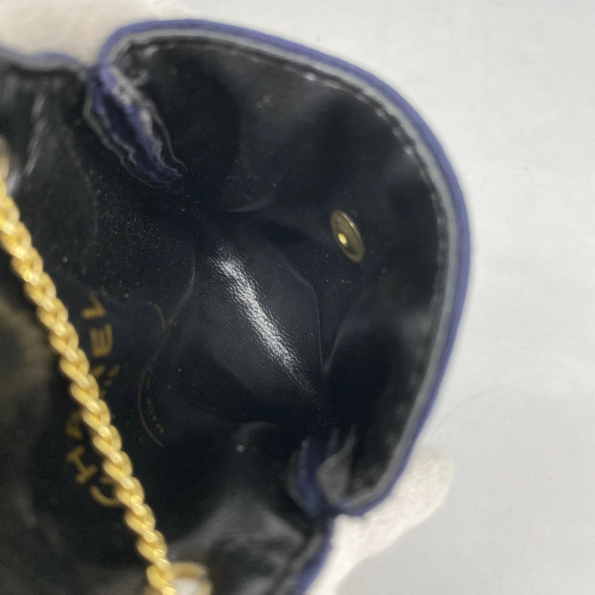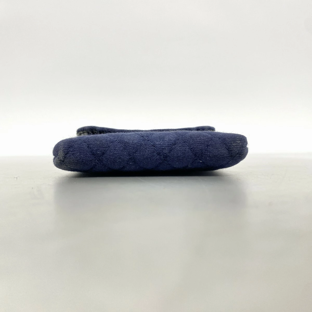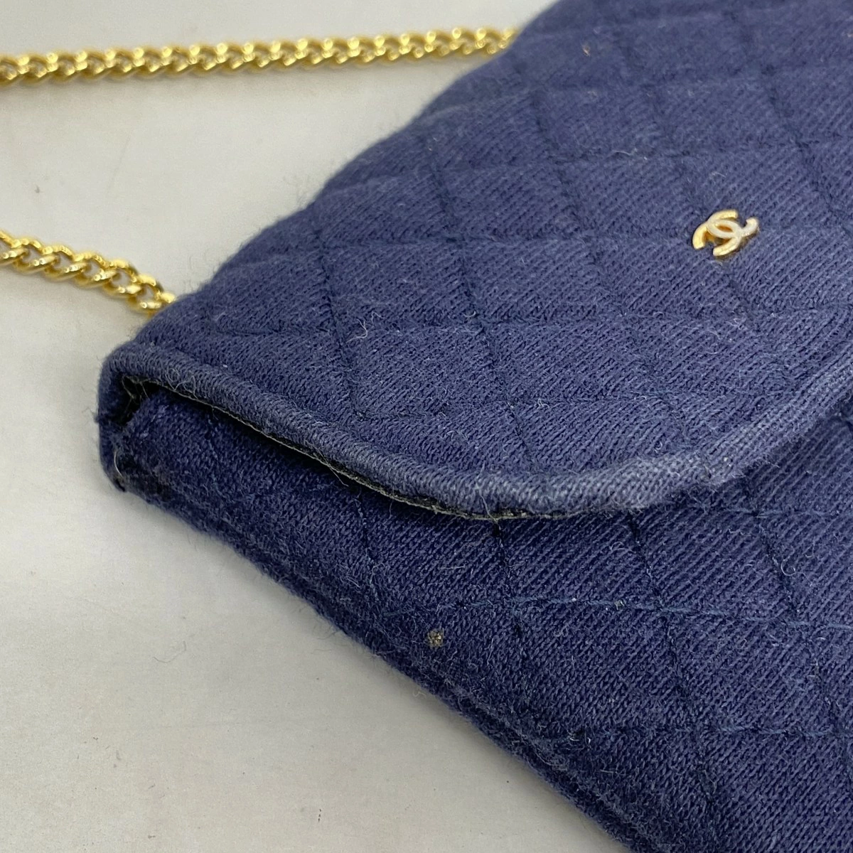 【5pa0805】シャネル ポーチ マトラッセ チェーンショルダー コットン ネイビー ゴールド金具【中古】レディース