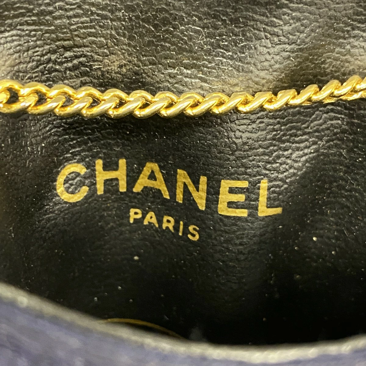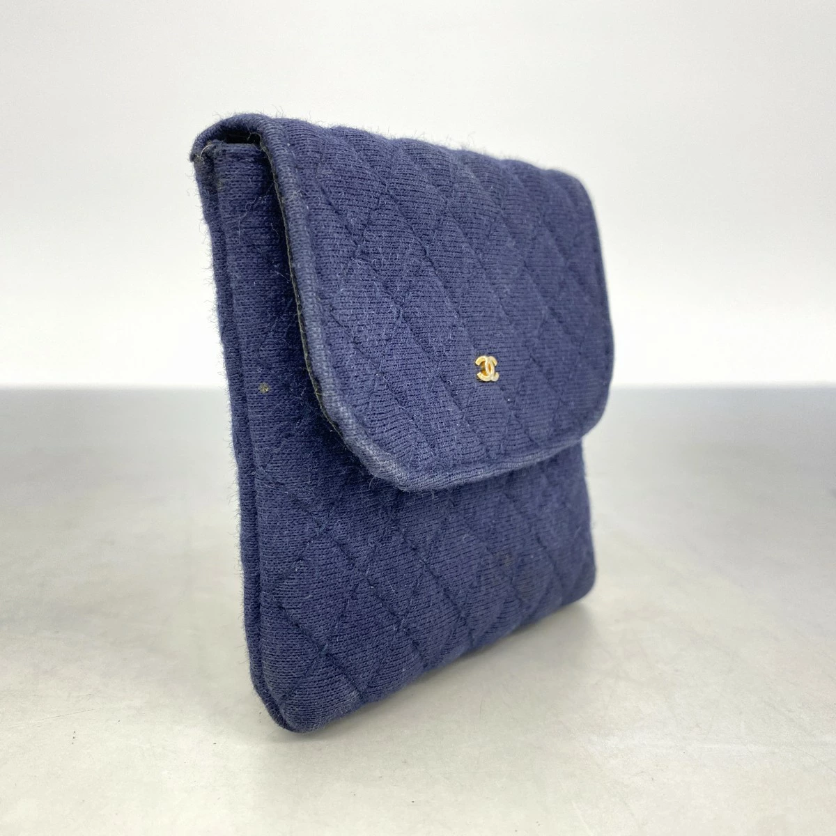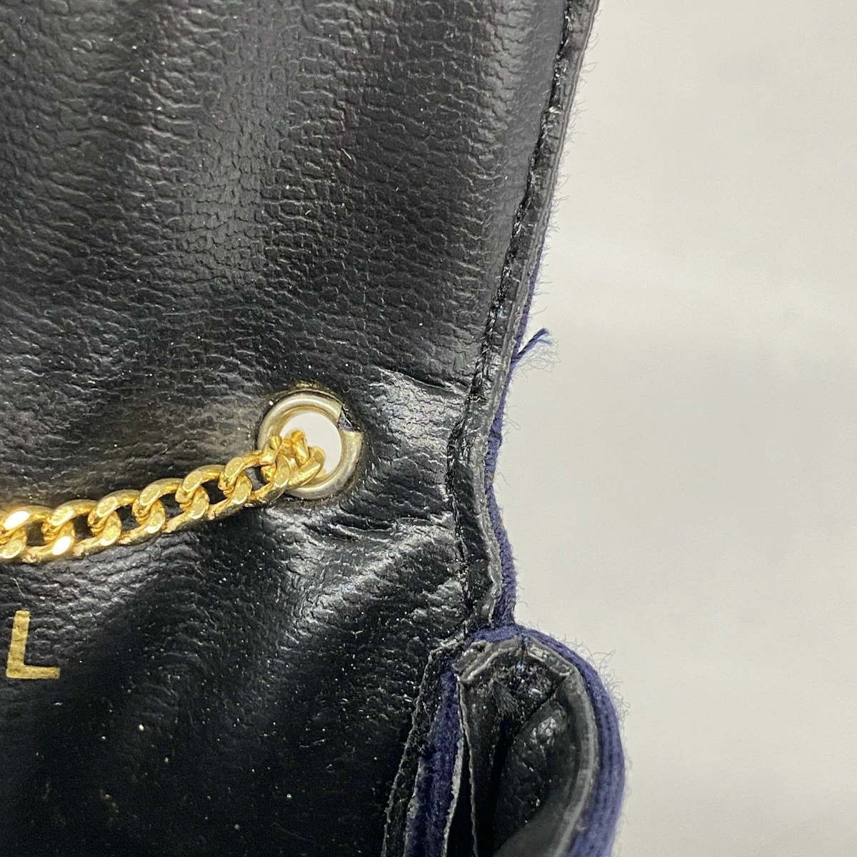 【5pa0805】シャネル ポーチ マトラッセ チェーンショルダー コットン ネイビー ゴールド金具【中古】レディース