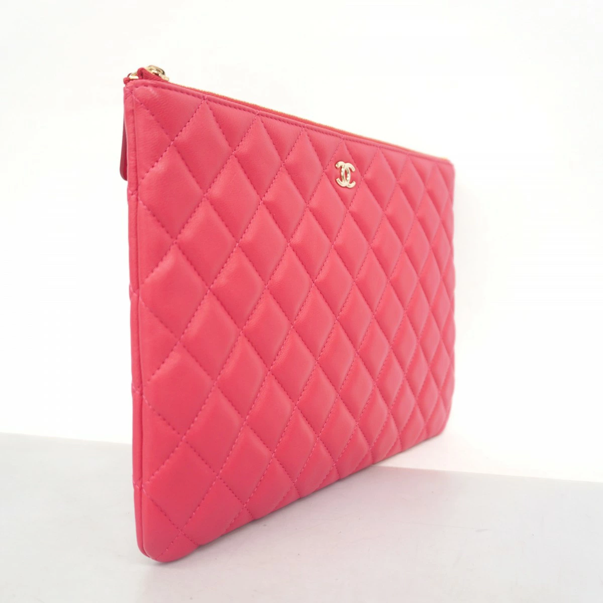 【5pa0939】シャネル クラッチバッグ マトラッセ ラムスキン ピンク シャンパンゴールド金具【中古】レディース