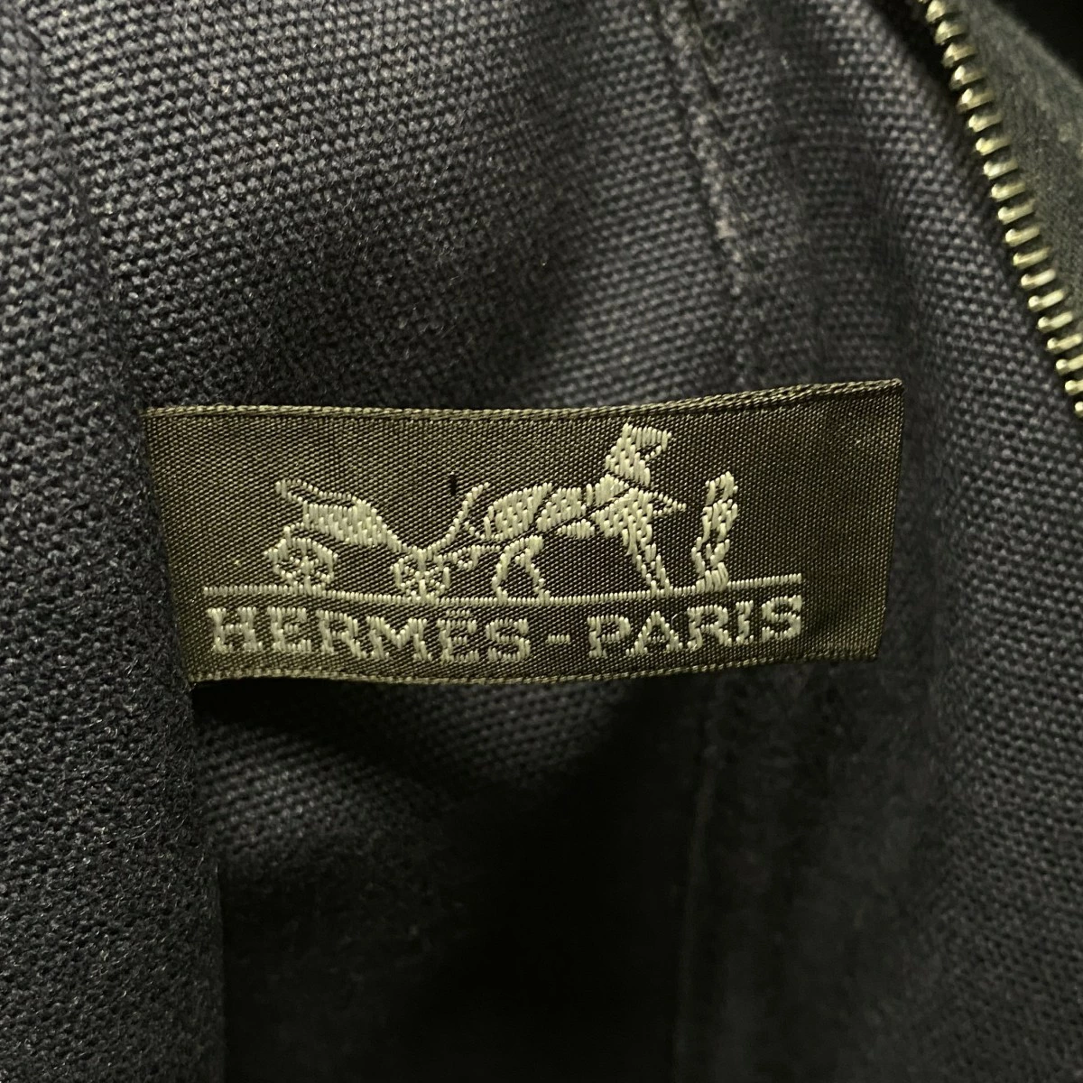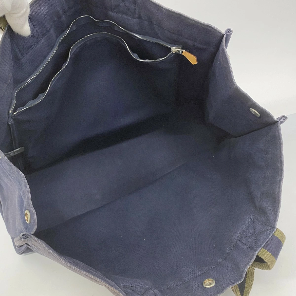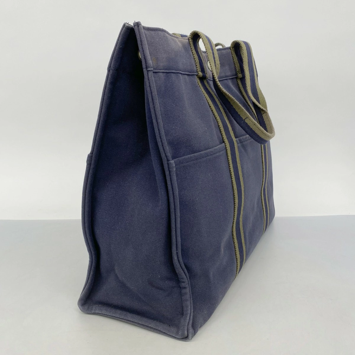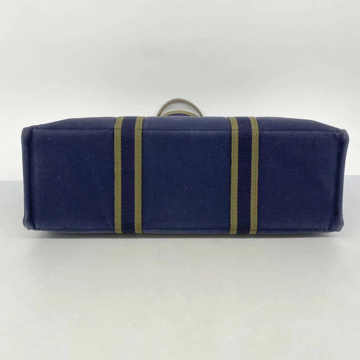 【5pa0983】エルメス トートバッグ フールトゥGM キャンバス ネイビー グリーン シルバー金具【中古】レディース