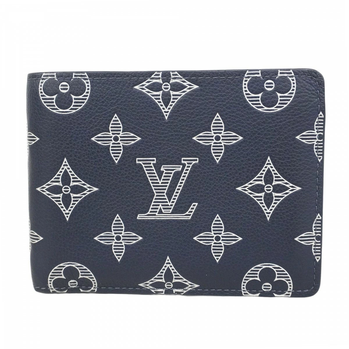 【5pa1101】ルイヴィトン 札入れ モノグラム・シャドウ ポルトフォイユミュルティプル M83379 ブルー【中古】メンズ