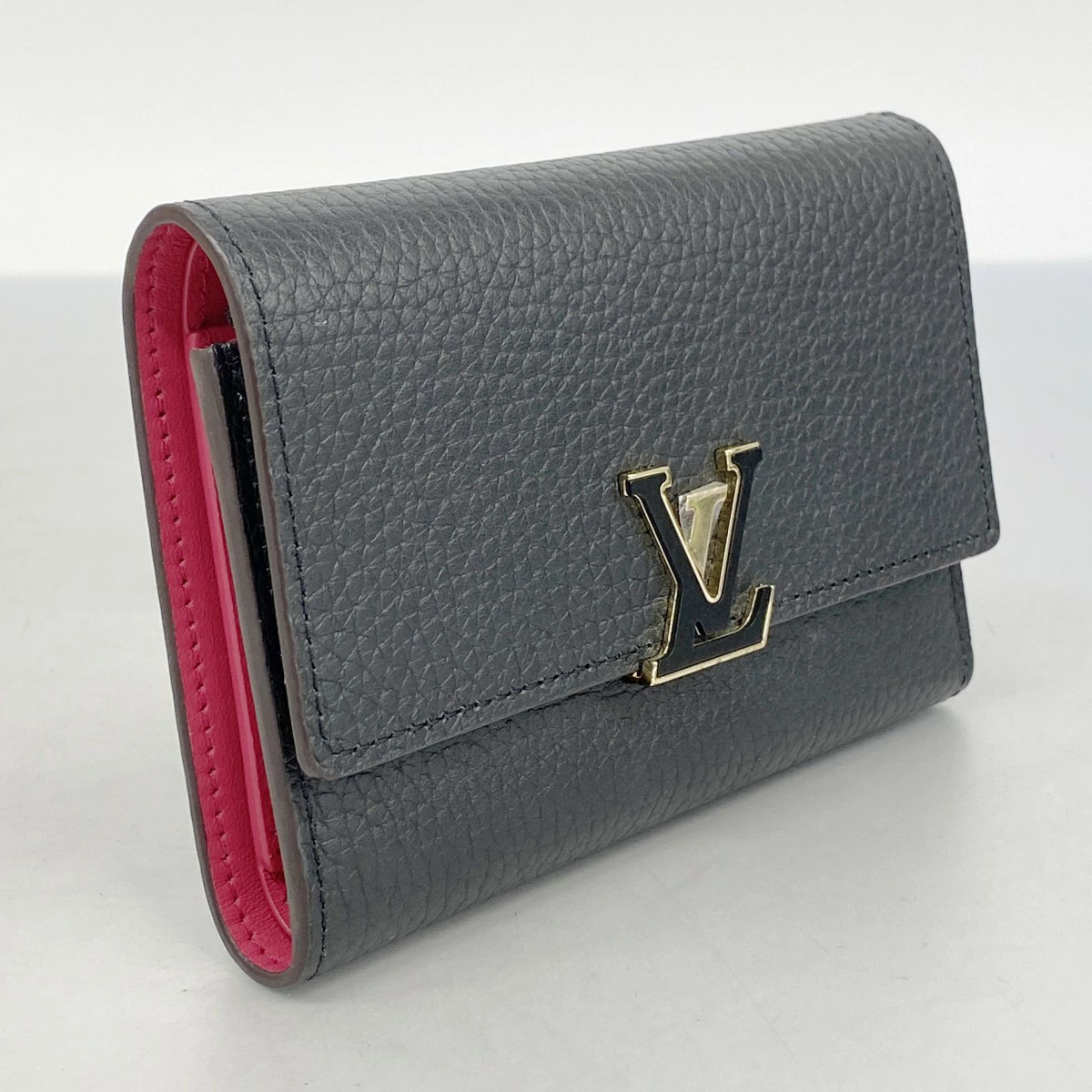 【5pa1253】ルイヴィトン 三つ折り財布 トリヨン ポルトフォイユカプシーヌコンパクト M62157 ノワール ホットピンク【中古】レディース