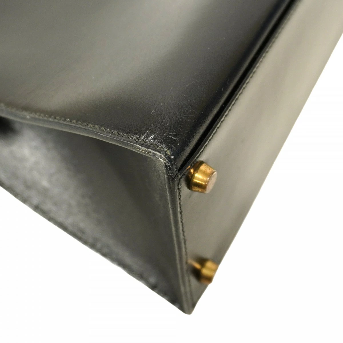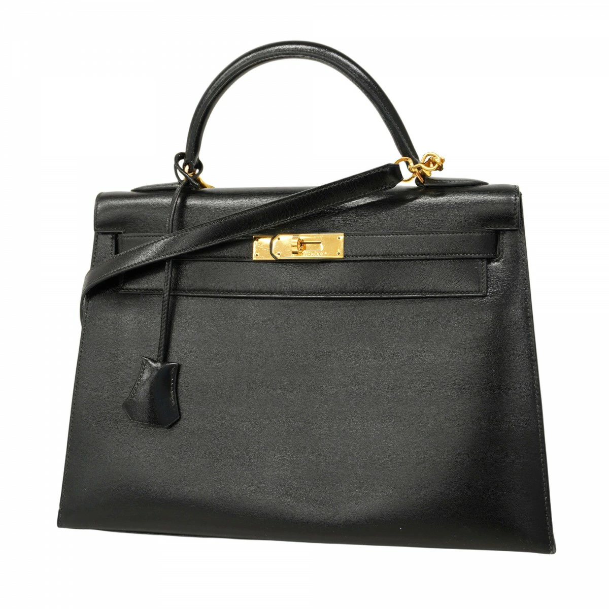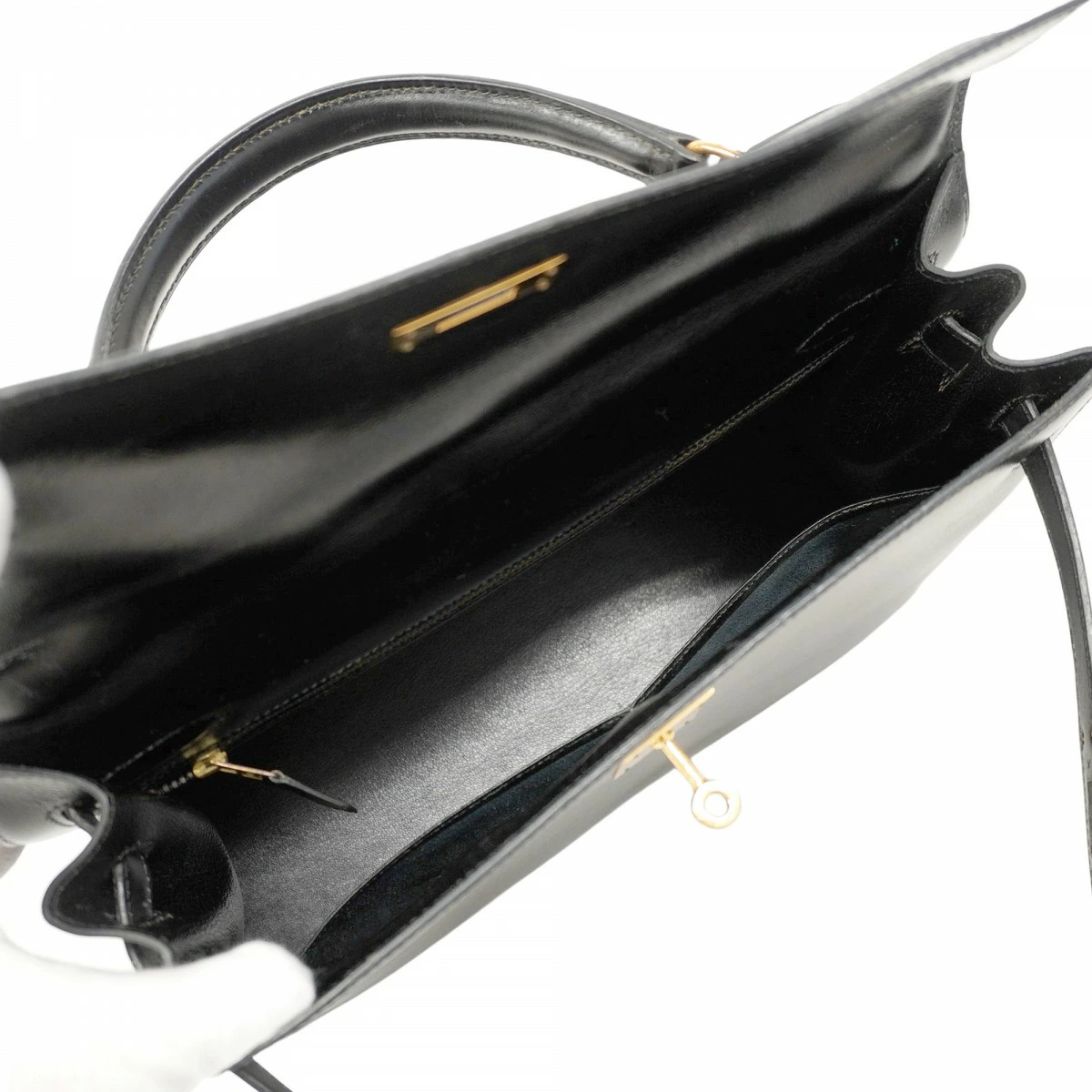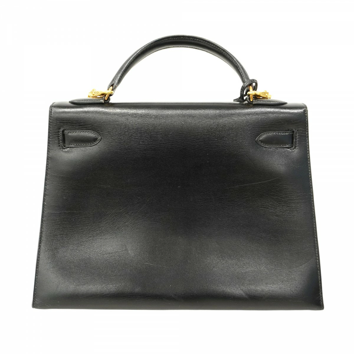 【5pa1472-h】エルメス ハンドバッグ ケリー32 ボックスカーフ ブラック ゴールド金具 〇T刻印 2wayバッグ【中古】レディース