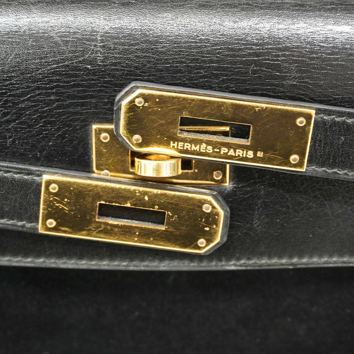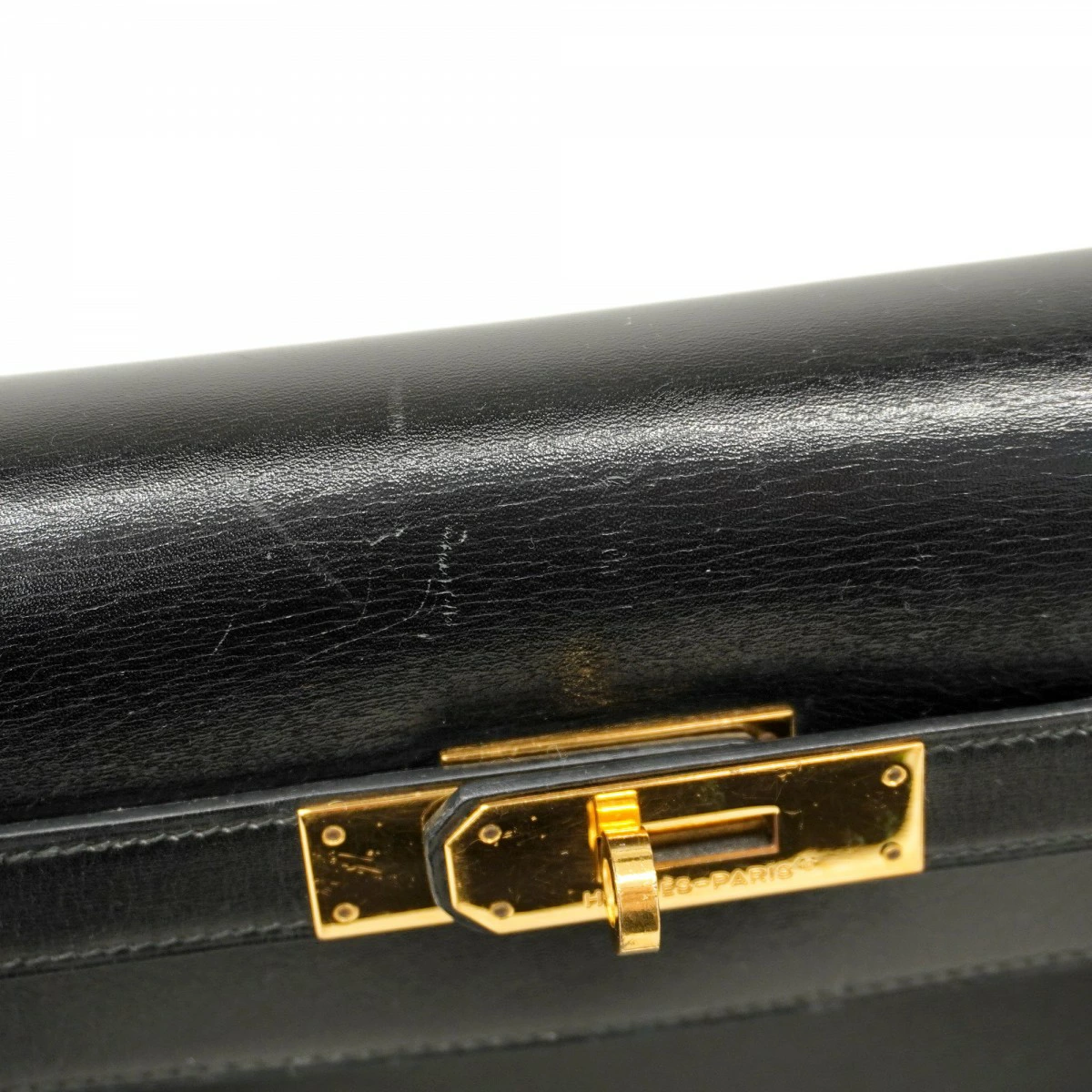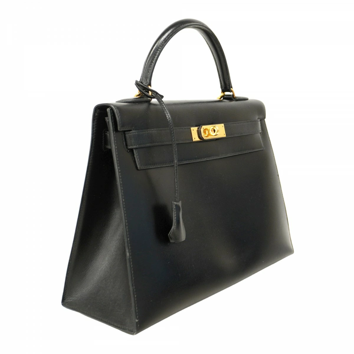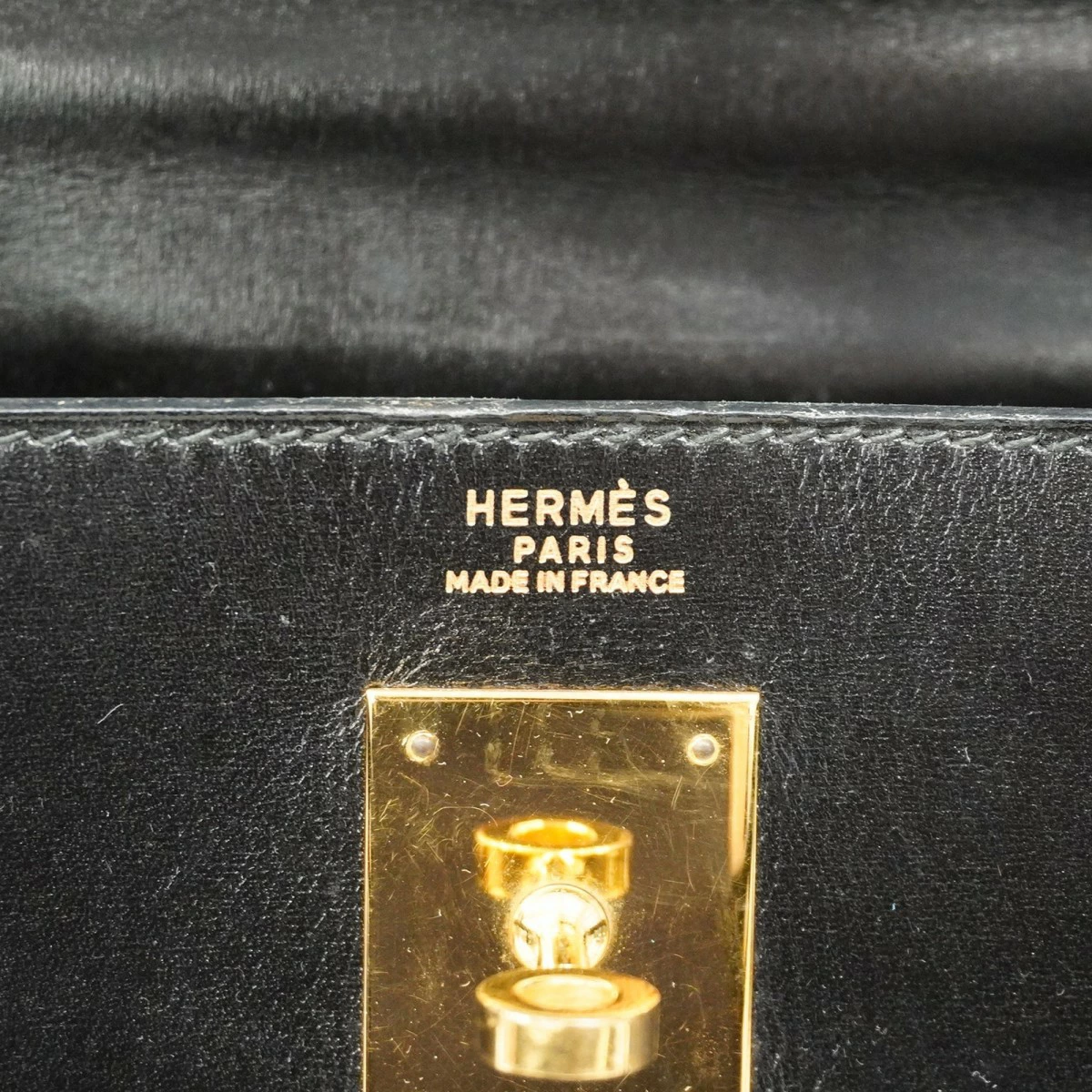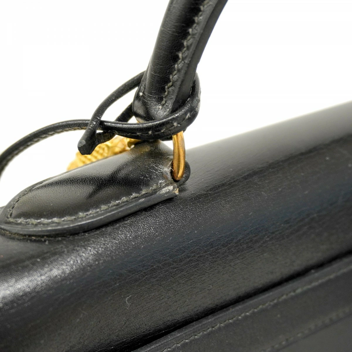 【5pa1472-h】エルメス ハンドバッグ ケリー32 ボックスカーフ ブラック ゴールド金具 〇T刻印 2wayバッグ【中古】レディース