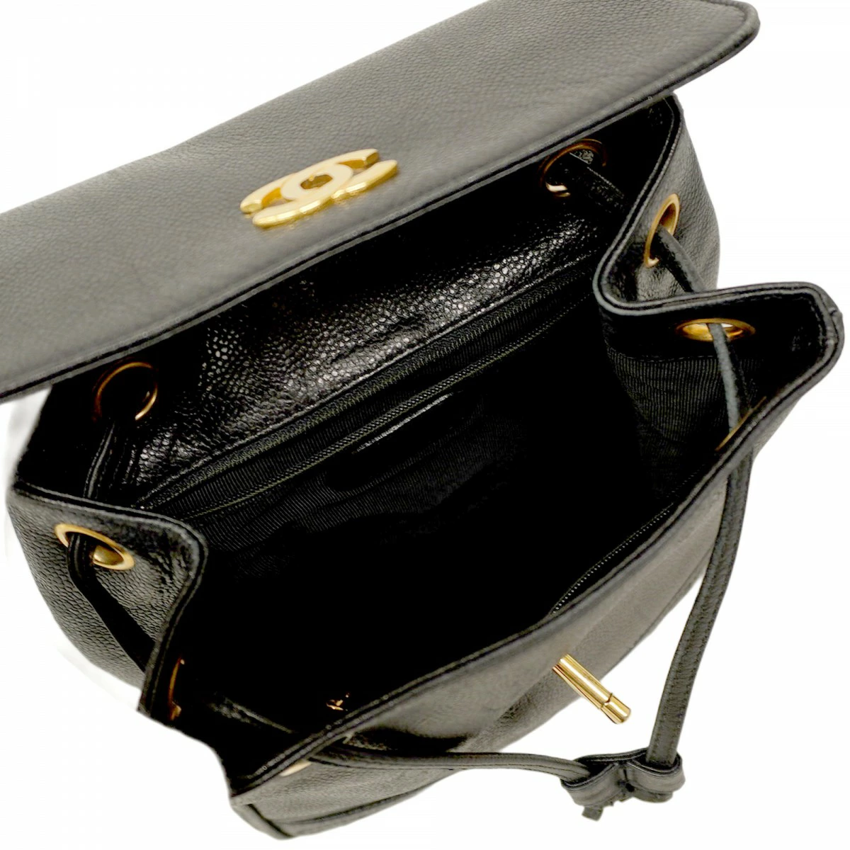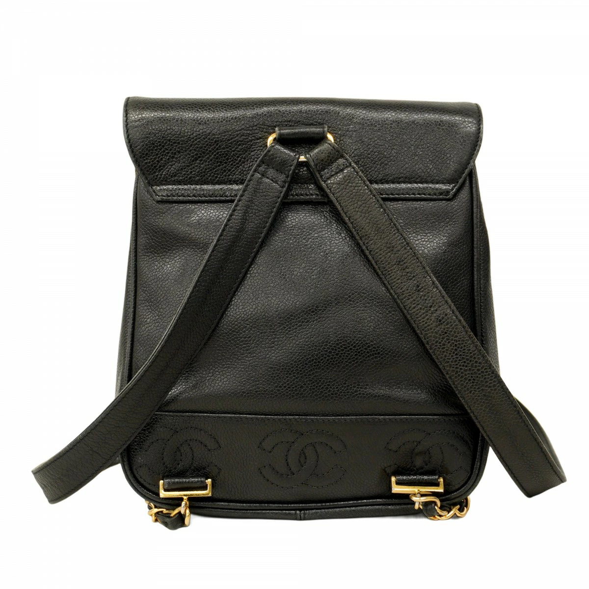 【5pb1482-h】シャネル リュック・デイパック キャビアスキン ブラック ゴールド金具【中古】レディース
