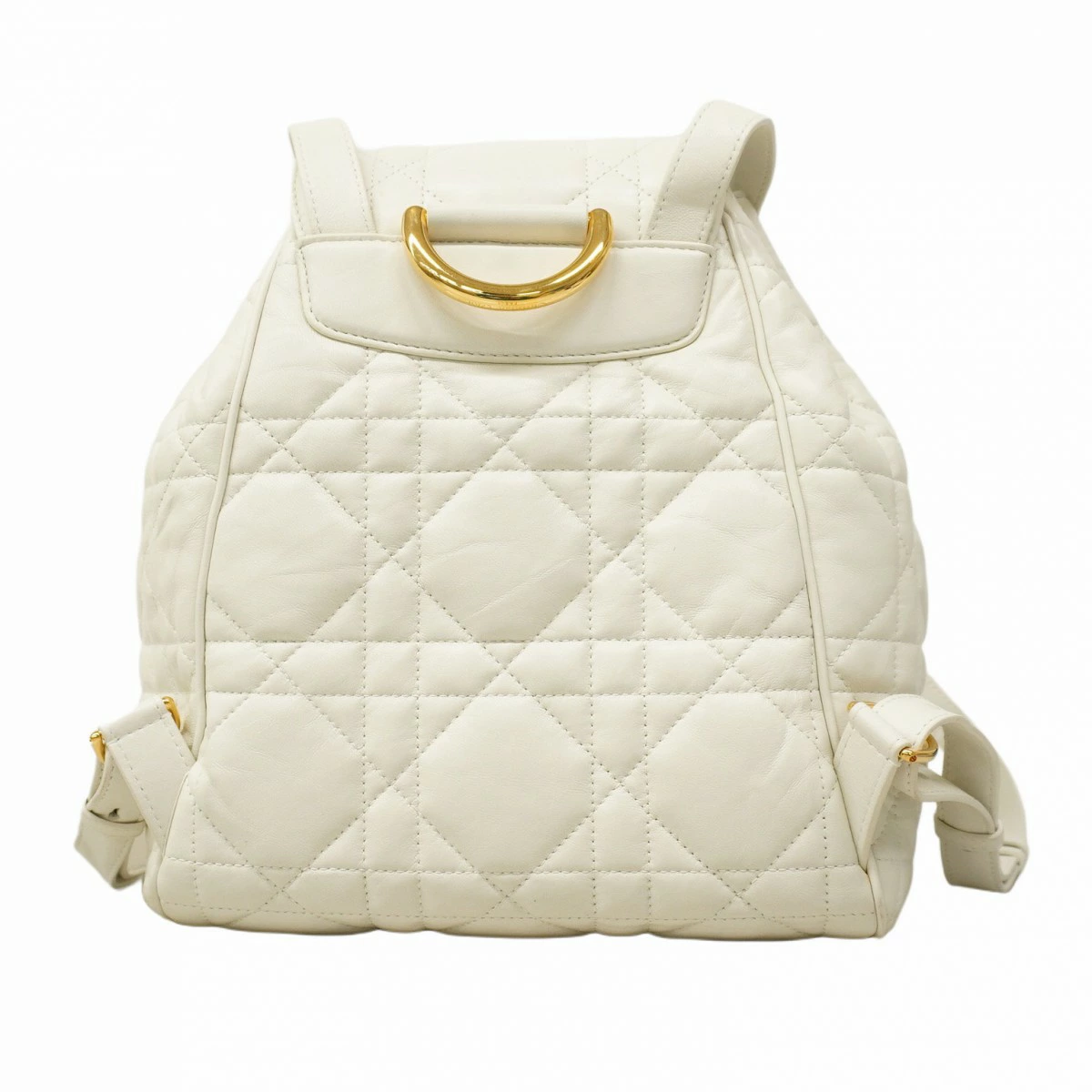 【5pb1751-h】クリスチャンディオール リュック・デイパック マクロカナージュ カロ レザー ホワイト ゴールド金具【中古】レディース