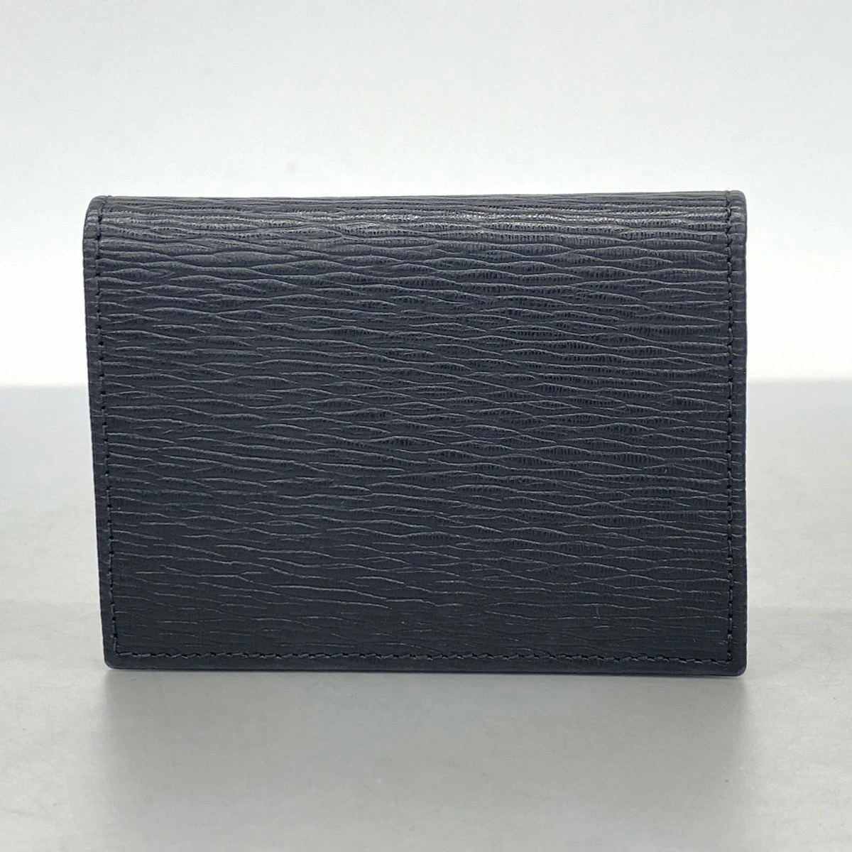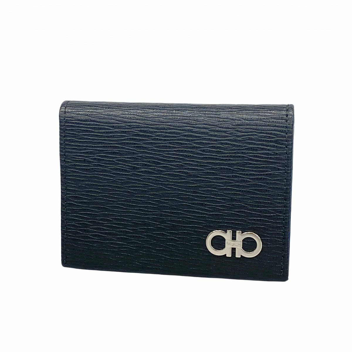 [5pb1776] Salvatore Ferragamo Gancini Business Card Holder, Black Leather with Silver Hardware, Pre-owned, Men's