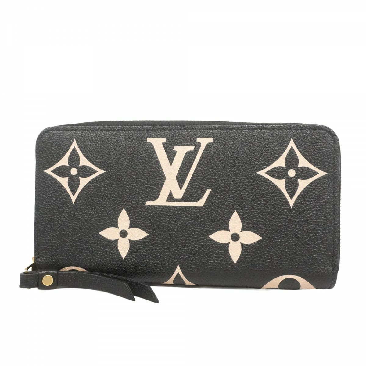 【5pb2221】ルイヴィトン 長財布 モノグラム・アンプラント バイカラー ジッピーウォレット M80481 ブラック ベージュ【中古】レディース