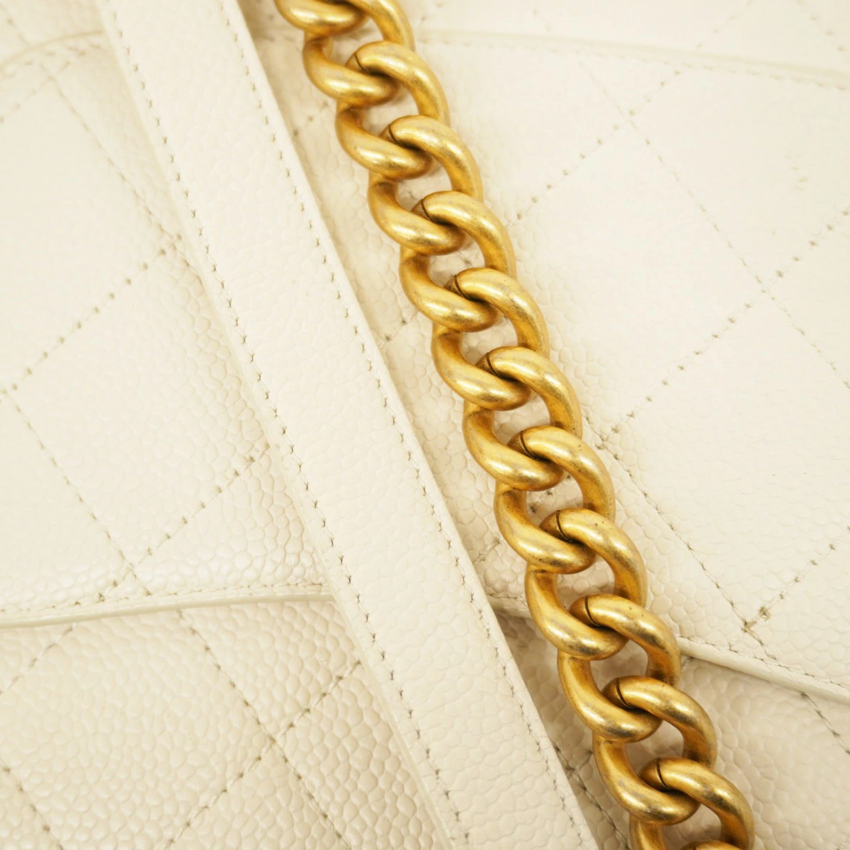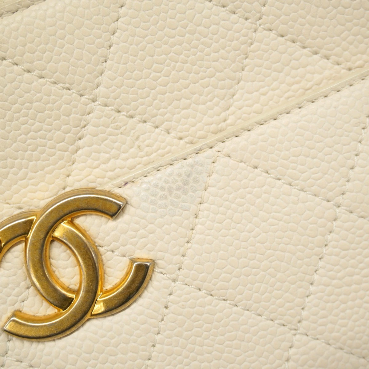 【5pb2660】シャネル ハンドバッグ マトラッセ チェーンショルダー キャビアスキン ホワイト ゴールド金具 2wayバッグ【中古】レディース