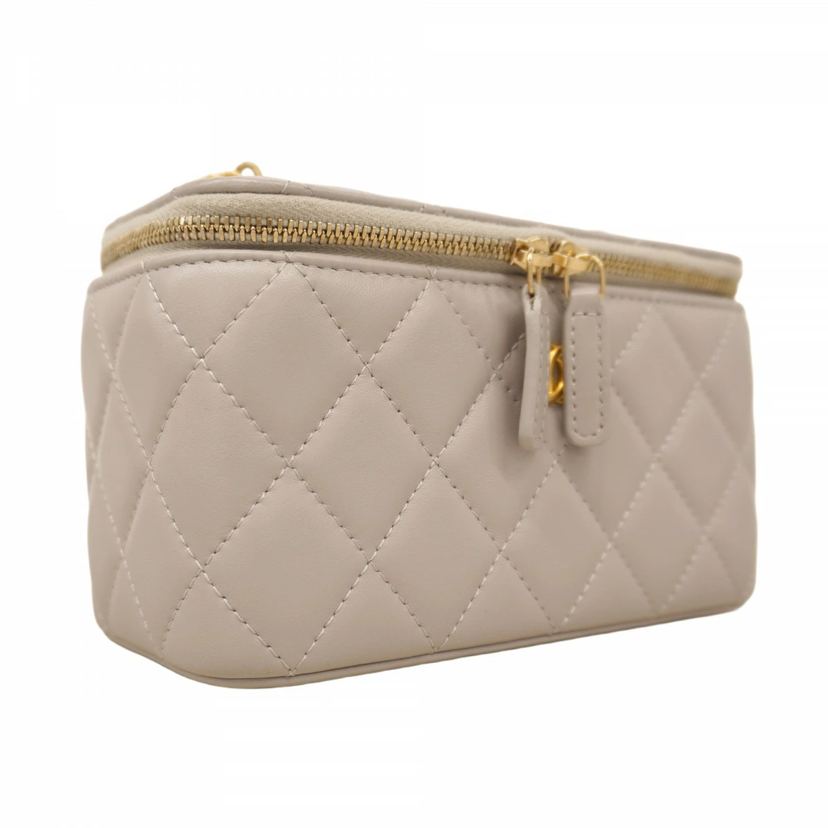 【5pb2665】シャネル バニティバッグ マトラッセ チェーンショルダー ラムスキン グレー ゴールド金具【中古】レディース