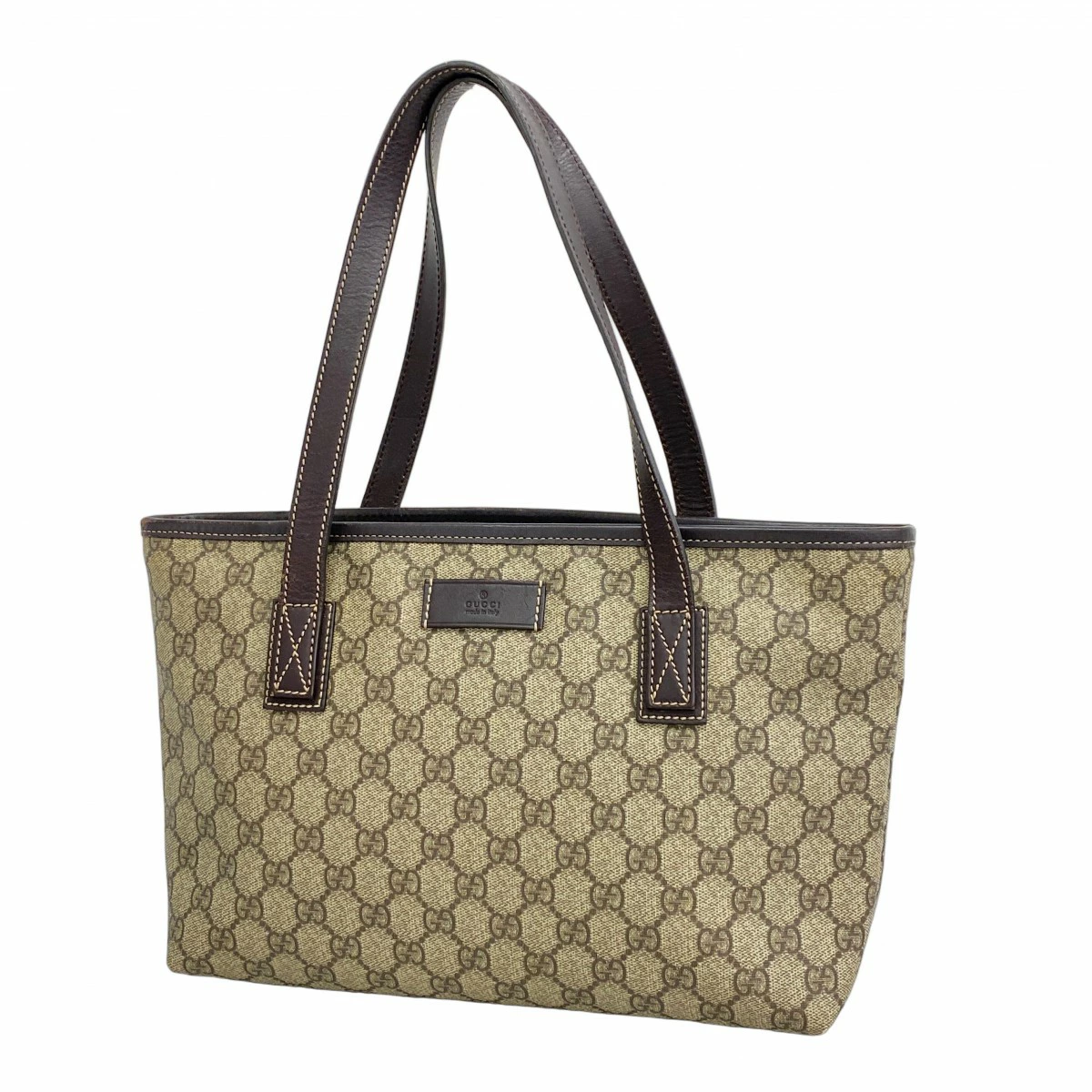 【5pb2905】グッチ トートバッグ GGスプリーム 211138 PVC ブラウン シルバー金具【中古】レディース