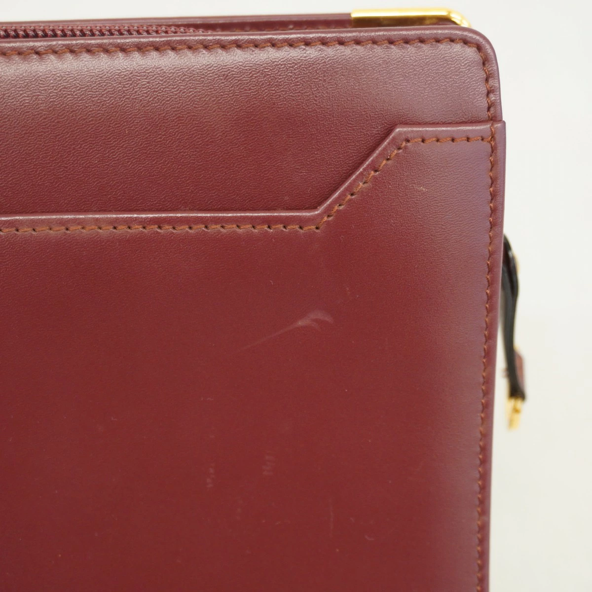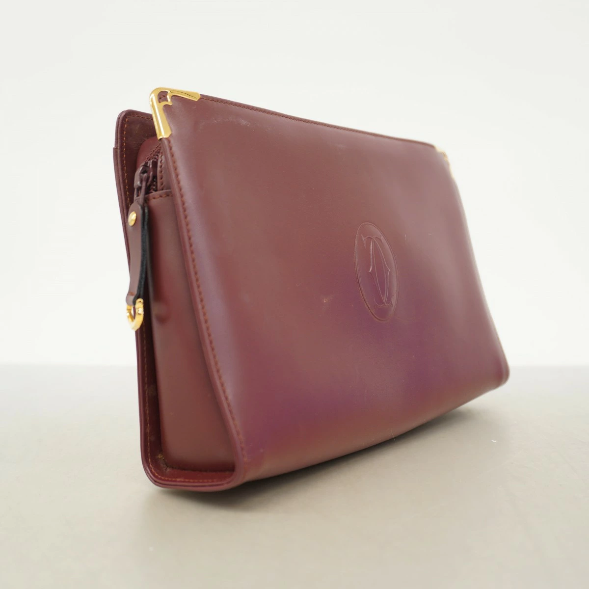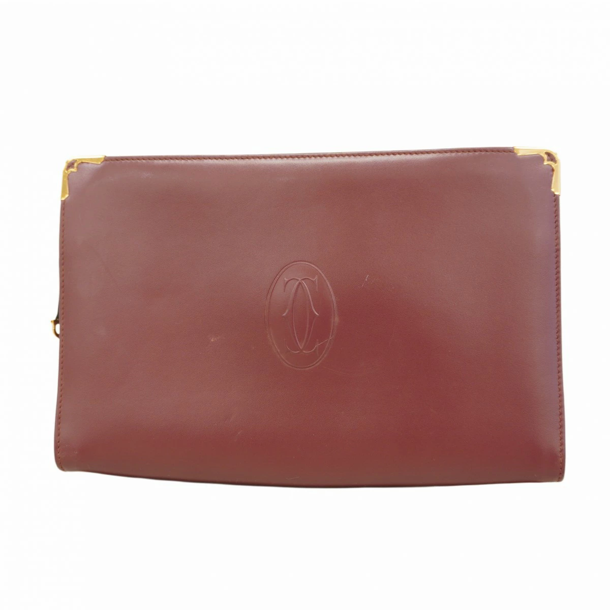 【5pc3558】カルティエ クラッチバッグ マスト レザー ボルドー ゴールド金具【中古】レディース