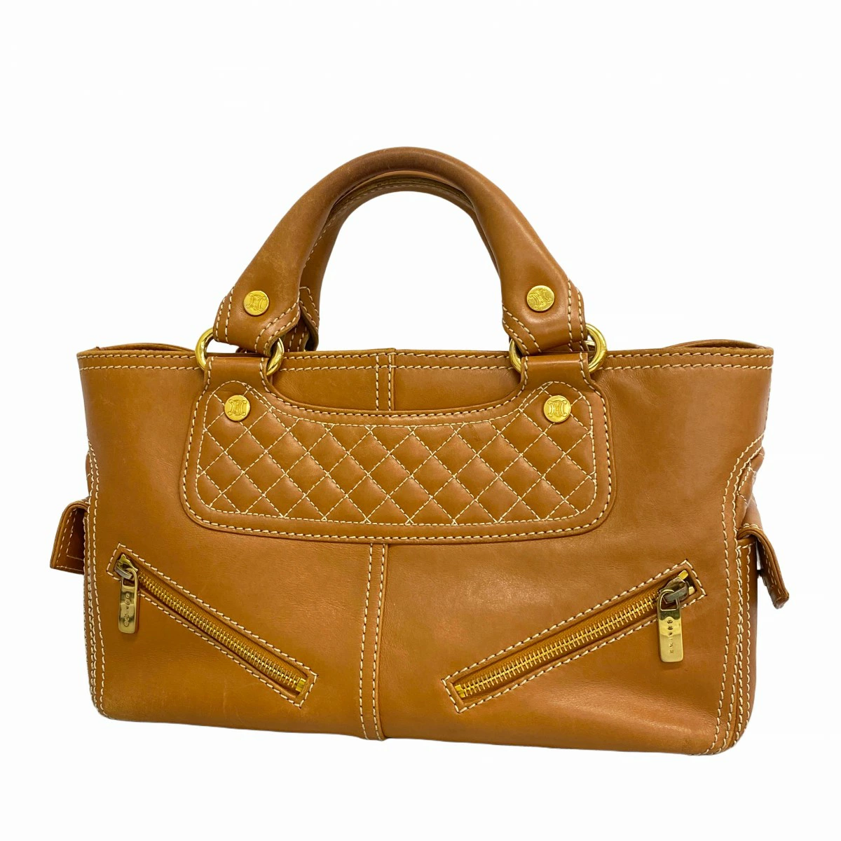 【5pc4130-k】セリーヌ ハンドバッグ ブギー レザー ライトブラウン ゴールド金具【中古】レディース