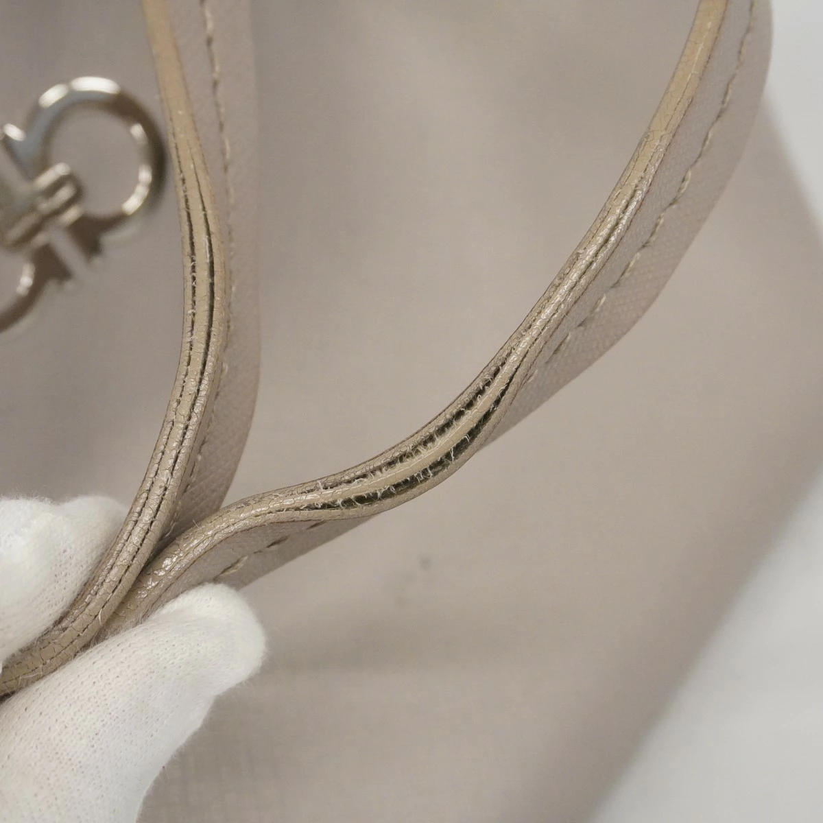 【5pc4325-k】サルヴァトーレフェラガモ ハンドバッグ ガンチーニ レザー グレー シルバー金具【中古】レディース